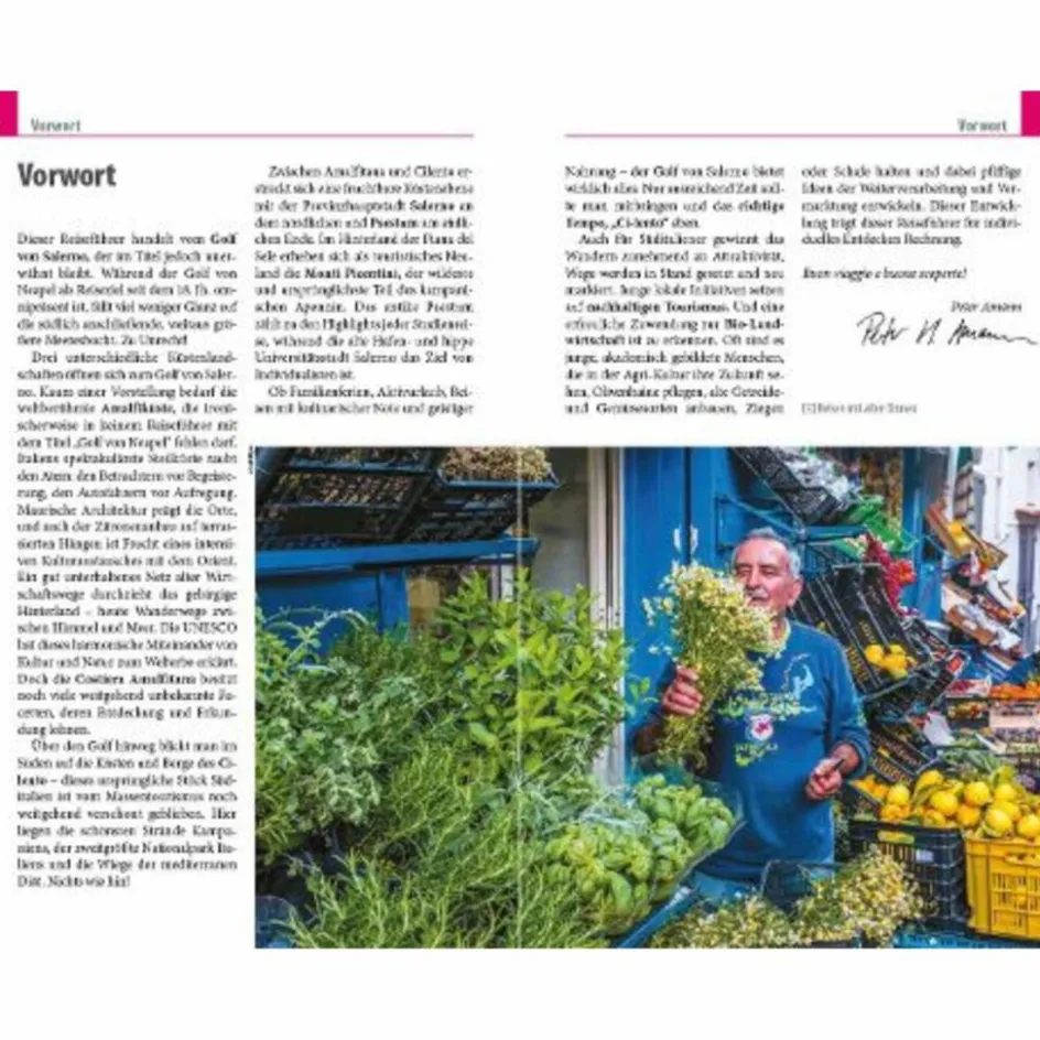 Doch die Amalfitana besitzt noch viele weitgehend unbekannte Facetten, die es zu entdecken gilt. Jedes Kapitel des Reiseführers beginnt mit einer Doppelseite, auf der die Inhalte mit einer Übersichtskarte der Region, Highlights und Seitenverweisen vorgestellt werden. Farblich auf die Kapitel abgestimmte Seitenzahlkästchen erleichtern die Orientierung im Buch. Natürlich enthält der Reiseführer die bewährten und praktischen Tipps zu Reisefragen von A-Z. Im erweiterten Vorspann finden sich Übersichtsseiten mit Beschreibungen aller Regionen, eine Jahresübersicht zu Festen und Veranstaltungen, Routenvorschläge und persönliche Top-Tipps des Autors. Dazu gibt es ausführliche Informationen zu Geschichte, Kultur und Traditionen dieser Region. Ein kleine Sprachhilfe Italienisch erleichtert die Konversation vor Ort.