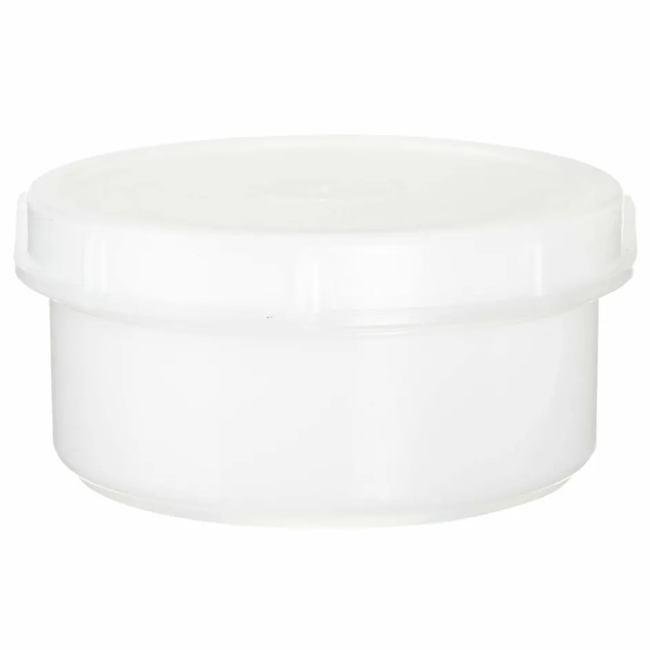 Dose mit großer Öffnung aus Polypropylen. Leicht zu befüllen, auslaufsicher verschließbar, lebensmittelecht und hergestellt in Deutschland.