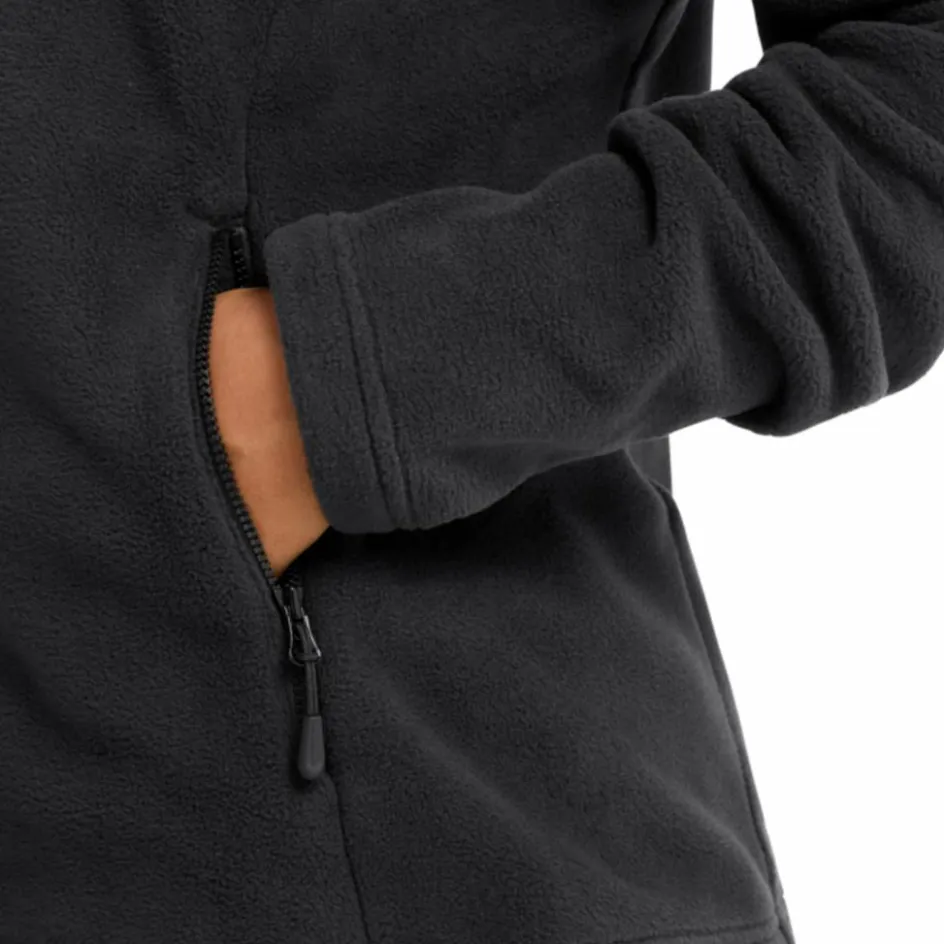 Die kuschlige Fleecejacke besteht aus weichem Recyclingmaterial, welches seinen Komfort auch im Inneren mit seiner sanft aufgerauten Struktur fortsetzt. Das Kunstfasergewebe in 100er Stärke punktet bei aktiven Einsätzen mit einem raschen Feuchtigkeitstransport und einer kurzen Trocknungszeit. Durch den 3in1 Systemreißverschluss und Verbindungsschlaufen lässt sich das Fleece ganz einfach mit einer passenden wetterfesten Außenjacke kombinieren. Abgerundet wird der vielseitige Klassiker durch einen gemütlichen Stehkragen und zwei platzspendende RV-Taschen