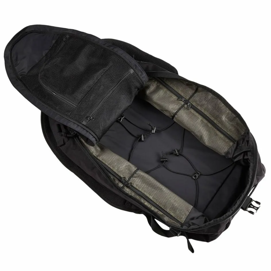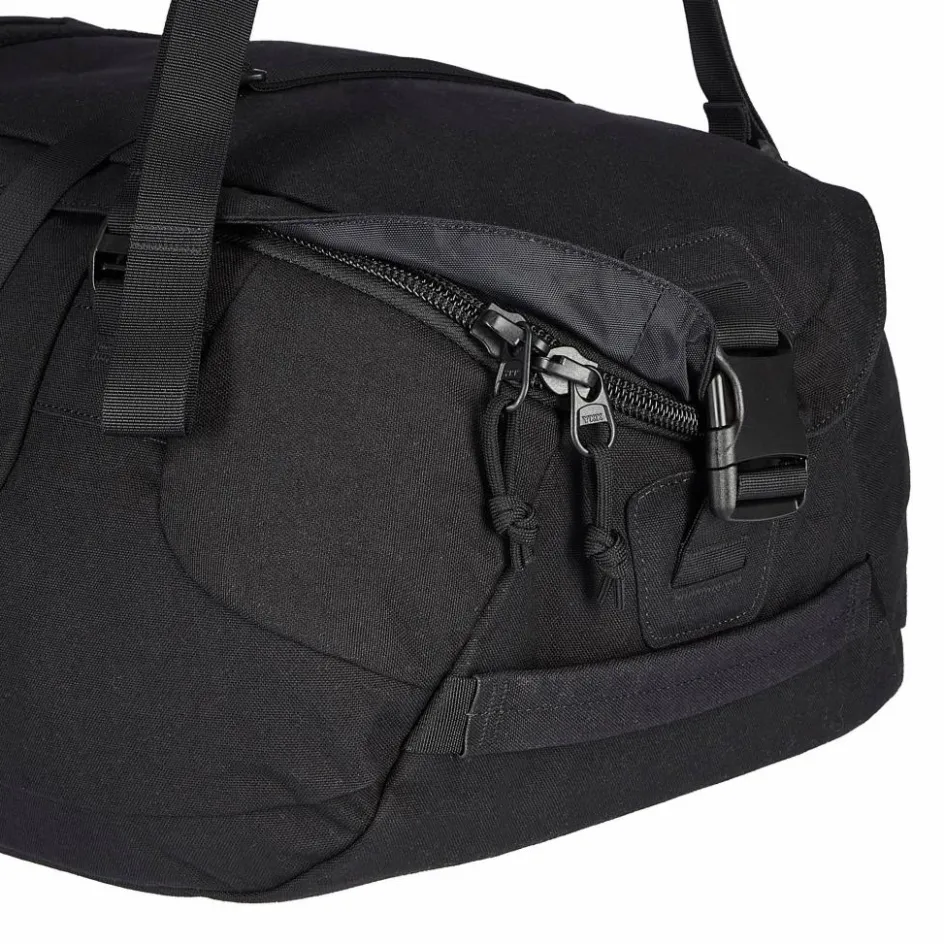Das Hauptfach besitzt eine U-förmige Öffnung, sodass sich der Deckel komplett zur Seite klappen lässt und die Tasche leicht zu befüllen ist. Die Bungee-Kordeln im Innern halten alles an Ort und Stelle, auch wenn die Duffle nicht voll befüllt ist. In den Netzfächern im Deckel und an den Seiten ist Platz für Kleinteile wie Elektronik. Du brauchst mehr Stauraum? Die Klettfläche und Lasercut MOLLE-Laschen außen bieten Platz für modulare Erweiterungen (siehe Zubehör).