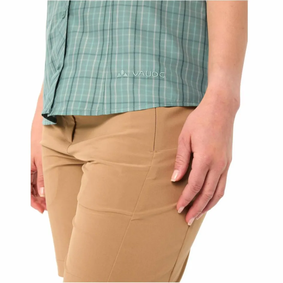 Das leichte Kurzarmhemd besteht aus weichem Lyocell und funktionalem Polyester. Das auf holzfaserbasierte Lyocell sorgt für ein angenehmes Tragegefühl und wirkt zudem leicht kühlend und geruchshemmend. Nicht zu verachten, wenn du im schönsten Sonnenschein den ganzen Tag unterwegs bist. Bei anstrengenden Passagen leitet die Kunstfaser Feuchtigkeit schnell weiter. Durch das schnelltrocknende Material ist die Bluse auch fix wieder trocken.