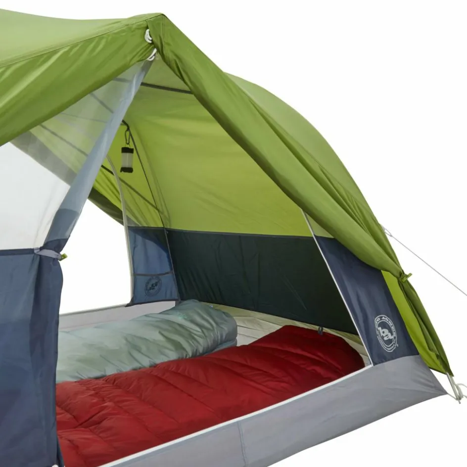 In den beiden Apsiden kannst du das Gepäck lagern, während du im Innenzelt genügend Platz für zwei Isomatten hast. Das weit aufgespannte Innenzelt schafft im Kopfbereich viel Bewegungsfreiheit, was ein gemütliches Beisammensitzen am Abend ermöglicht. Um in der Nacht die Stirnlampe oder Brille schnell zu finden, verfügt das Innenzelt über zwei Seiten- und vier Deckentaschen (zwei davon mit Kabeldurchführung).