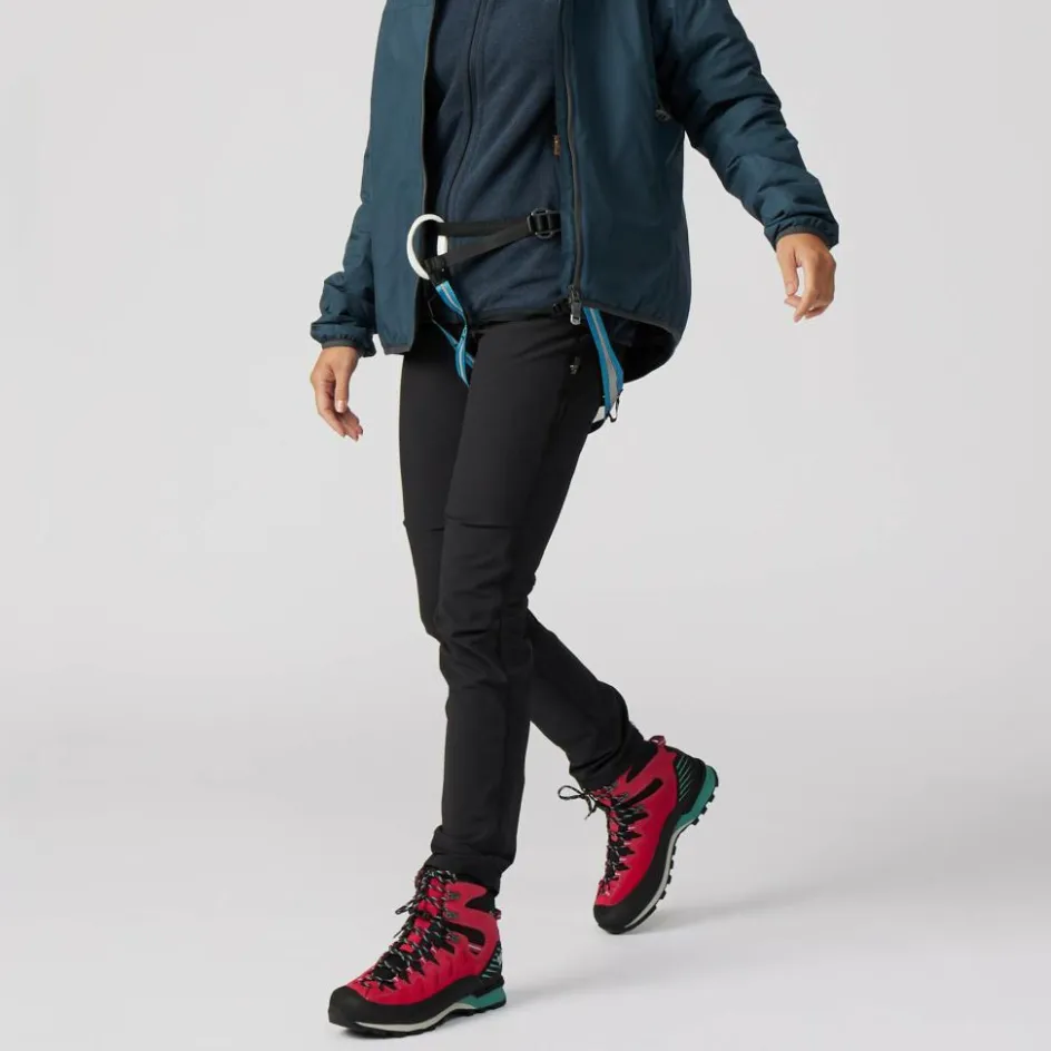 Insgesamt stehen dir acht Öffnungen zur Befestigung von Eisclips zur Verfügung – vier pro Seite. Durch die Integration von Eisschraubenbefestigungen in den Beinschlaufen wird verhindert, dass deine Ausrüstung bei langen Zustiegen störend aneinanderschlägt. Der Gurt ist außerdem mit zwei textilen Materialschlaufen ausgerüstet.