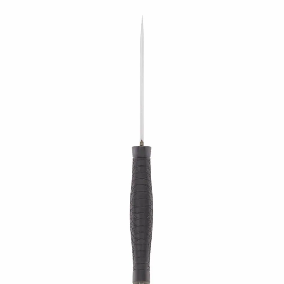 Der Erl ist durchgehend und steht am Griffende einige Millimeter hervor. Ihn umschließt das in allen Witterungslagen rutschfeste, griffige und zu allen Seiten strukturierte Heft aus TPE. Die geringe Wärmeleitfähigkeit erlaubt das Arbeiten bei Kälte, ohne dass der Griff die Wärme aus deiner Hand zieht.