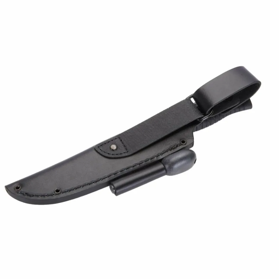 Wildnis- und Überlebensmesser aus Solingen mit schnitthaltiger Klinge aus CPM-3V Stahl, das jeder Situation gewachsen ist. Mit hochwertiger Köcherlederscheide und Feuerstarter von Light my Fire.
