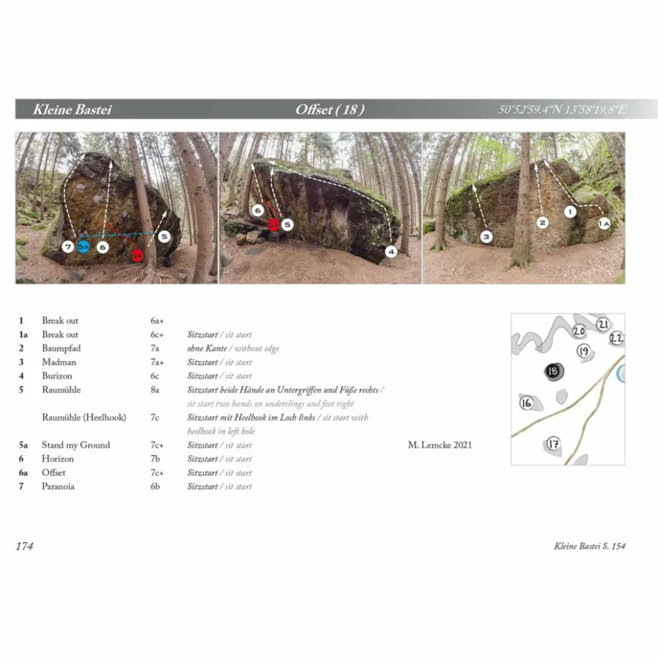 Mit OBouldering Bahratal 2021 ist eine komplett überarbeitete Neuauflage erschienen. Eine Hauptkarte mit Sektorenübersicht sowie Übersichtskarten und Zustiegsbeschreibungen zu jedem Sektor, GPS-Koordinaten für die einzelnen Blöcke und Blockfotos mit eingezeichneten Boulderlinien erleichtern die Orientierung. Im handlichen DIN A5-Querformat sind 336 Seiten gebündelt. Die zweisprachige Ausführung (Deutsch/ Englisch) umfasst auch die Boulderbeschreibungen.