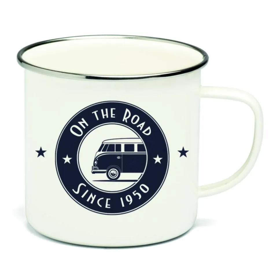 Großer Becher mit 400 ml Volumen. Du kannst den Becher dank der Emaille–Beschichtung leicht reinigen. Bruchsicher ist er ebenfalls. Ein tolles Geschenk für sich selbst oder für alle Bulli-Liebhaber!