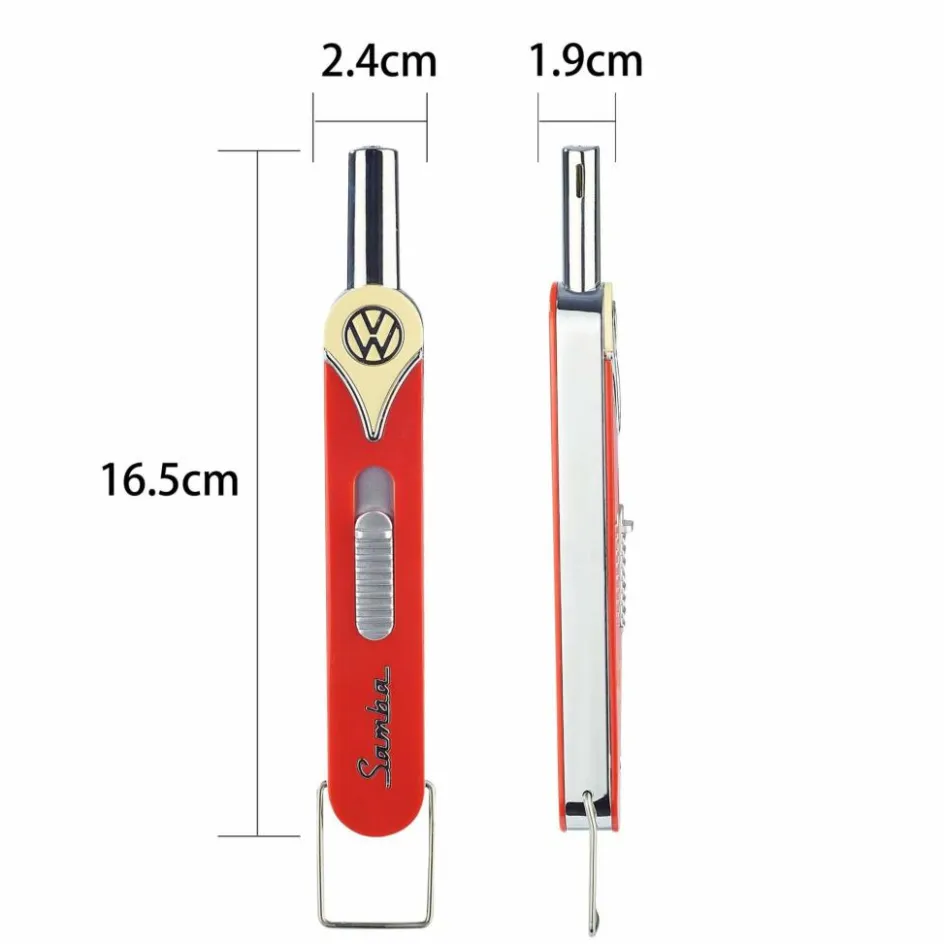 Das darf in keinem VW-Bus fehlen! Das Bulli-Stabfeuerzeug im VW T1 Design ist mit einem Aufhänger und einer Sicherheitssperre versehen und zündet zuverlässig Kerzen und Gasgrills an.