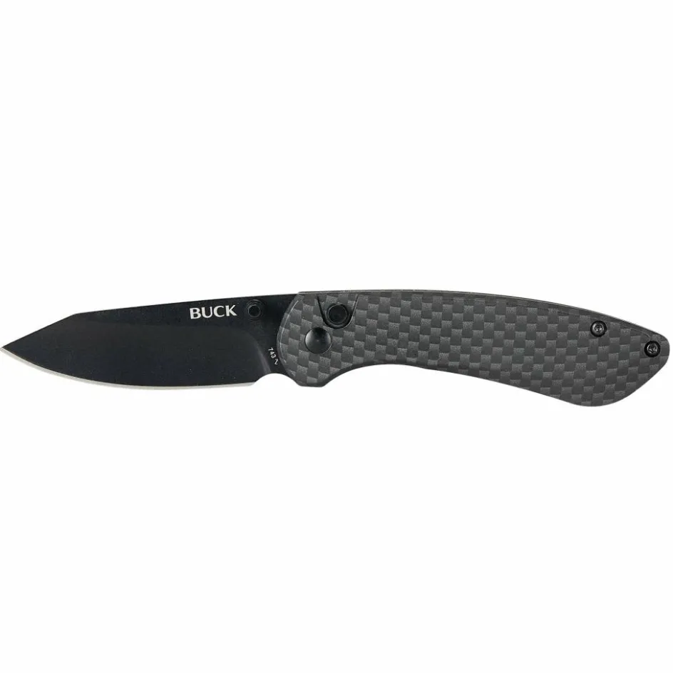 Bucks erstes Messer mit Button-Lock-Arretierung ist ein echter Hingucker. Auch wenn es auf den ersten Blick optisch zurückhaltend erscheint, wird man beim zweiten Hinschauen überrascht sein. Der Edelstahlgriff glänzt in Carbon-Optik und verleiht dem Messer ein modernes Aussehen. Über den Daumenpin kann die Klinge einhändig in die Arbeitsposition gebracht werden, wo sie dank der Button-Lock-Arretierung sicher verriegelt. Durch Drücken auf den eingelassenen Knopf lässt sich die Verriegelung lösen, um das Sovereign Mini mithilfe des Taschenclips in der Hosentasche zu verstauen, wo es dank seiner kleinen Größe kaum auffällt.