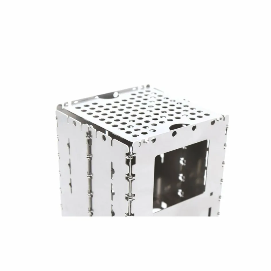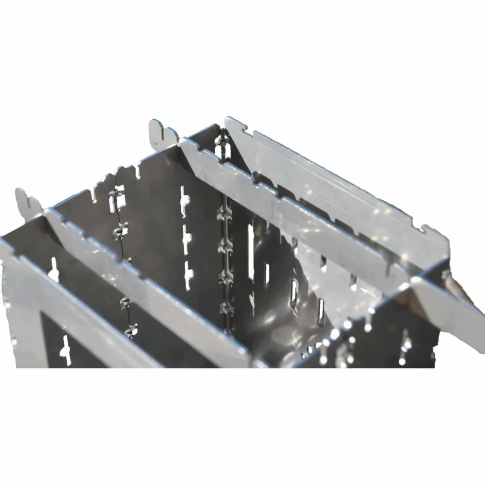 Als Brennstoff können Äste und Kiefernzapfen, aber auch ein Spiritusbrenner oder Esbitwürfel dienen. Dadurch bist du fast überall unabhängig unterwegs. Das Universalrost kann mittig eingesetzt werden, wodurch du die Bushbox auch mit einem Trangiabrenner betreiben kannst. Oben aufgelegt dient das Universalrost als Grillplatte.