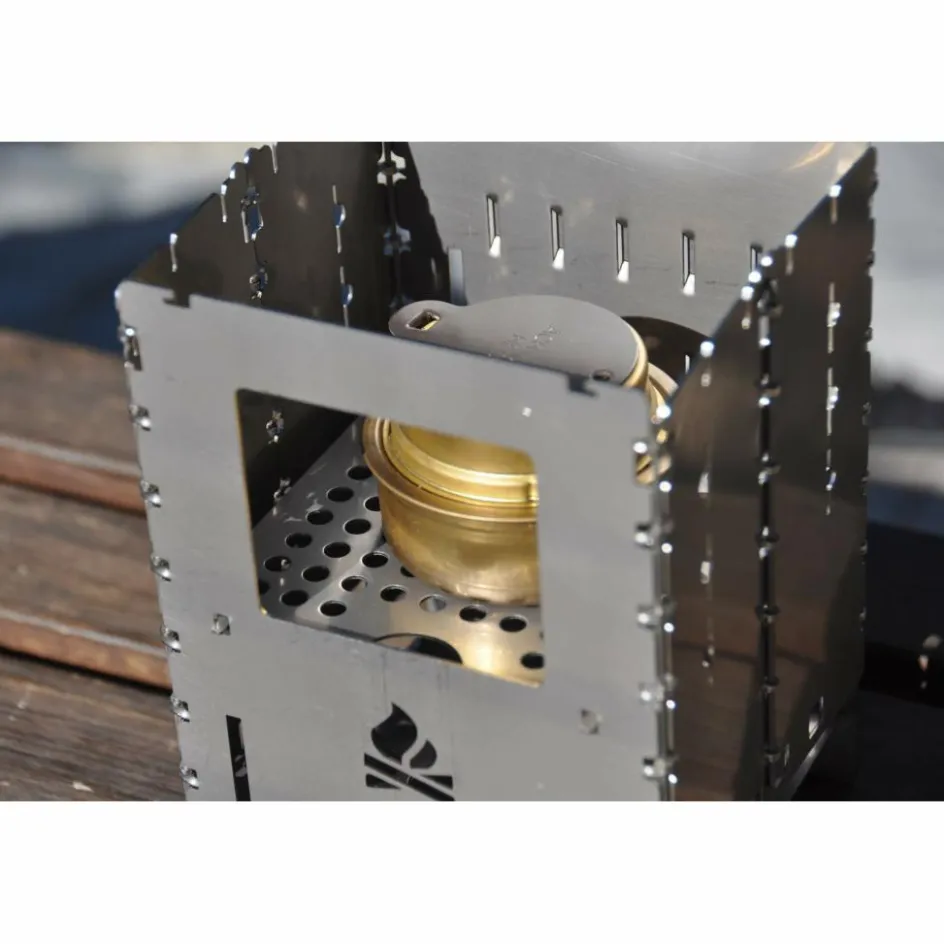 Faltbarer Holz- und Spirituskocher für die nächste leckere Mahlzeit auf Tour. Im Set befindet sich zusätzlich zum Kocher ein Universalrost, zwei Topfauflagen und eine strapazierfähige Tasche.