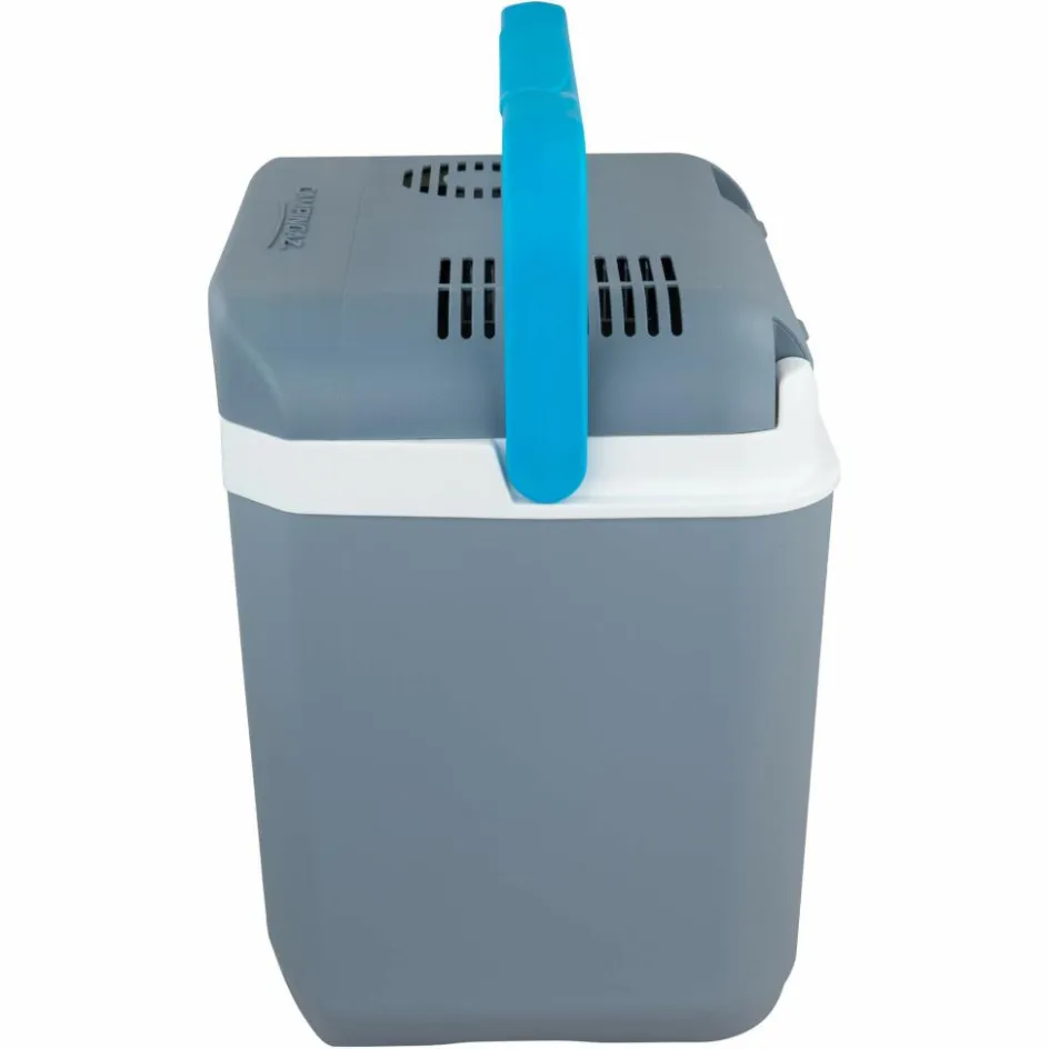 Die kleine Kühlbox mit 24 l Volumen bietet Platz für bis zu acht 1,5 l Flaschen und kühlt Lebensmittel und Getränke bis zu 19 °C unter Umgebungstemperatur. Der Betrieb erfolgt mit 12V oder 230V.