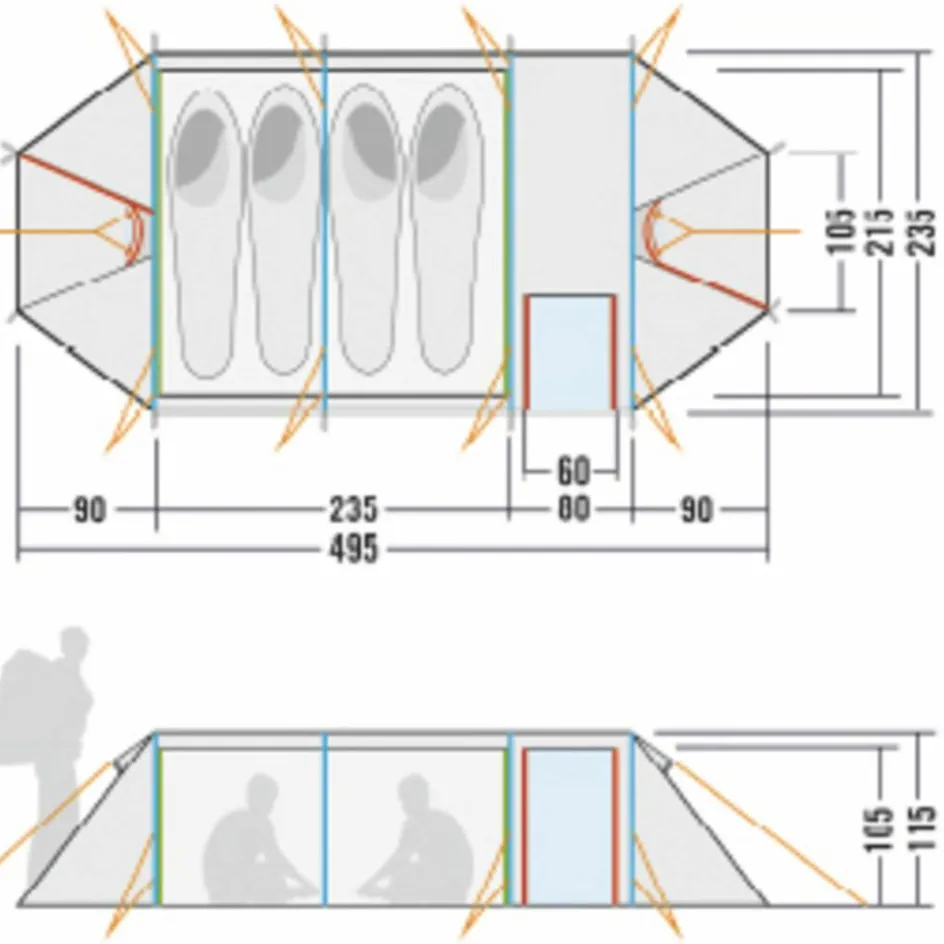 Ob drei oder vier Personen – 220 cm Liegefläche ermöglichen es dir ganz in Ruhe zu schlafen. Da das Innenzelt quadratisch geschnitten ist, kann längs oder quer geschlafen werden.