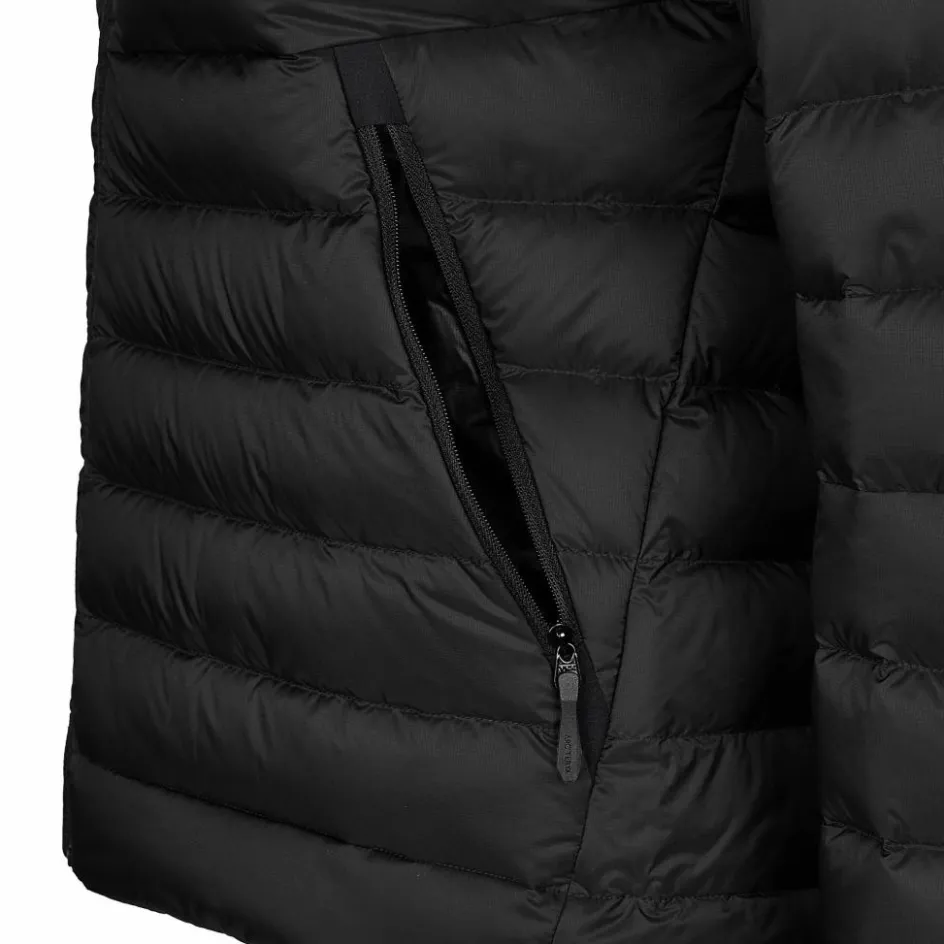 Als High-End Daunenjacke kommt der Cerium Hoody mit einer clever angeordneten Füllung nach Down Composite Mapping Technologie daher. Dies bedeutet, dass sich die hochwertige Gänsedaune dort befindet, wo du am meisten Wärme benötigst: am Rumpf, an Ärmeln und Kapuze. Gleichzeitig sind die Bereiche der Achseln, des Kinns, der Ärmelbündchen und der Schultern sehr feuchtigkeits- und druckanfällig. Hier wird daher Coreloft Kunstfaser eingesetzt, die weniger empfindlich als Daune ist und im feuchten Zustand noch wärmt.