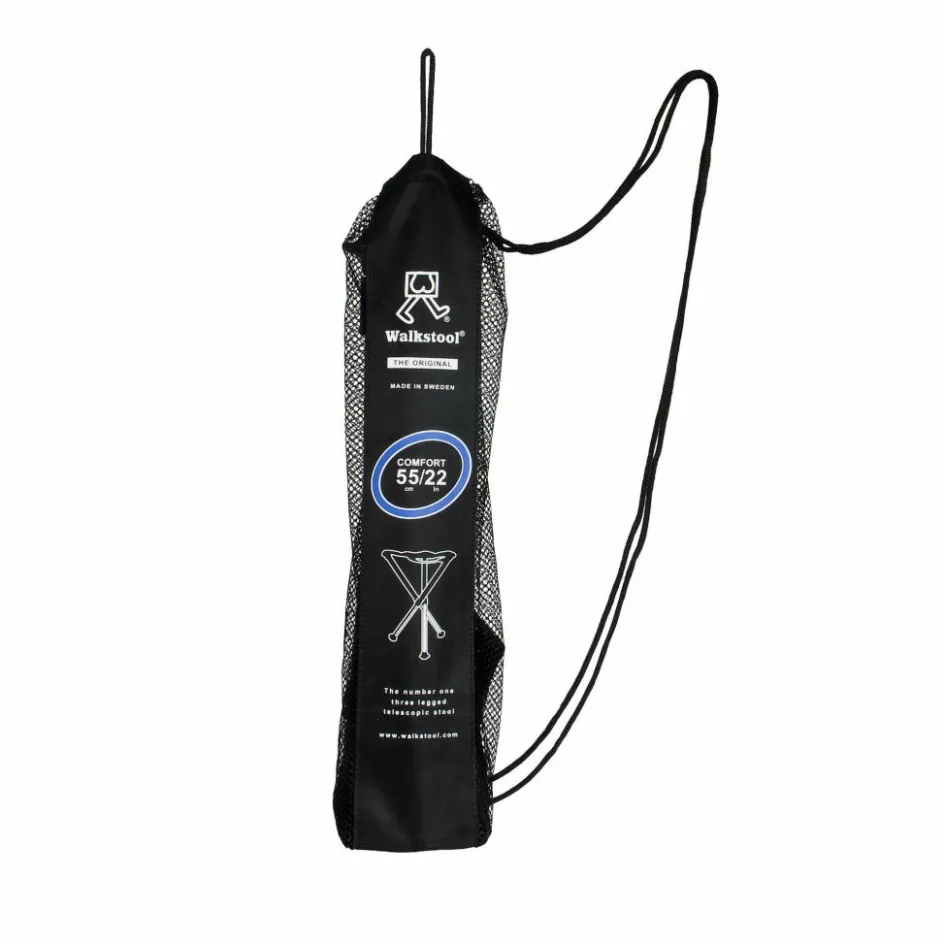 Der Walkstool Comfort macht seinem Namen alle Ehre. Er ist durch die breite Sitzfläche äußerst bequem und kann zum Transport klein verpackt in der Umhängetasche mitgenommen werden.