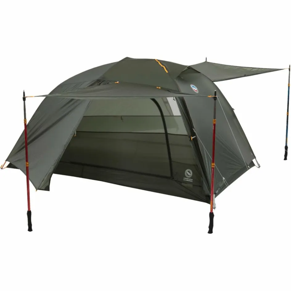 Das von Big Agnes entwickelte Hyperbead-Gewebe ist rund 6 % leichter als vergleichbare Materialien und dabei besonders reißfest. Es bleibt dauerhaft wasserabweisend und kommt ohne PFAS-haltige Imprägnierung aus. Große Mesh-Flächen und ein Hochlüfter sorgen für gutes Klima im Innenzelt, während die fast senkrechten Wände eine komfortable Sitzhöhe bieten. Der Eingang lässt sich komplett öffnen und ermöglicht einen 180°-Panoramablick.
