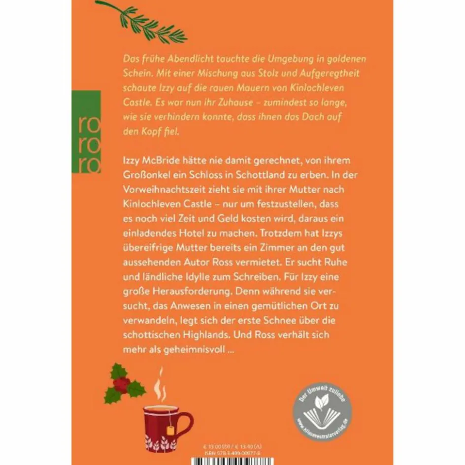 Und damit etwas Geld in die Kasse fließt, hat diese bereits ein Zimmer an den gut aussehenden Autor Ross Adair vermietet. Für Izzy ein Wettlauf gegen die Zeit. Denn während sich der erste Schnee über die schottischen Highlands legt, versucht sie, das Anwesen zu einem gemütlichen Ort zu machen – bevor sie über die Feiertage einschneien … Ein Wohlfühlroman mit allem, was das Herz begehrt: eine charmante Liebesgeschichte, liebenswürdige Figuren und viel Lokalkolorit!