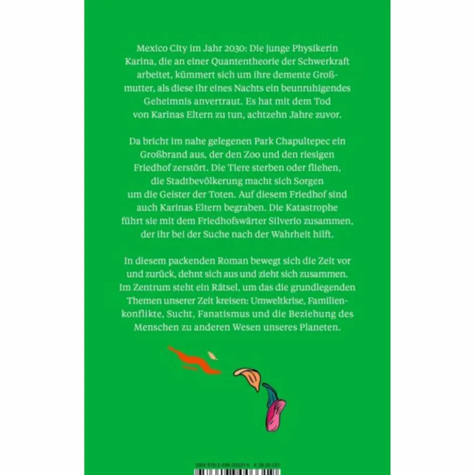 Mexiko-Stadt, Sommer 2029. Karina, Doktorandin der Quantenphysik, lebt bei ihrer alkoholkranken Großmutter, um die sie sich kümmert. Im nahe gelegenen Park Chapultepec, in dem sich ein Friedhof und ein riesiger Zoo befinden, bricht während einer Hitzewelle ein Feuer aus, die Tiere sterben oder fliehen, der Park wird völlig zerstört.