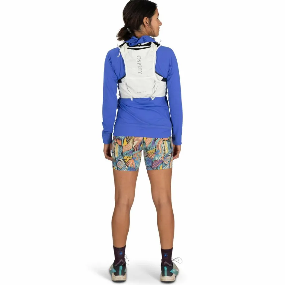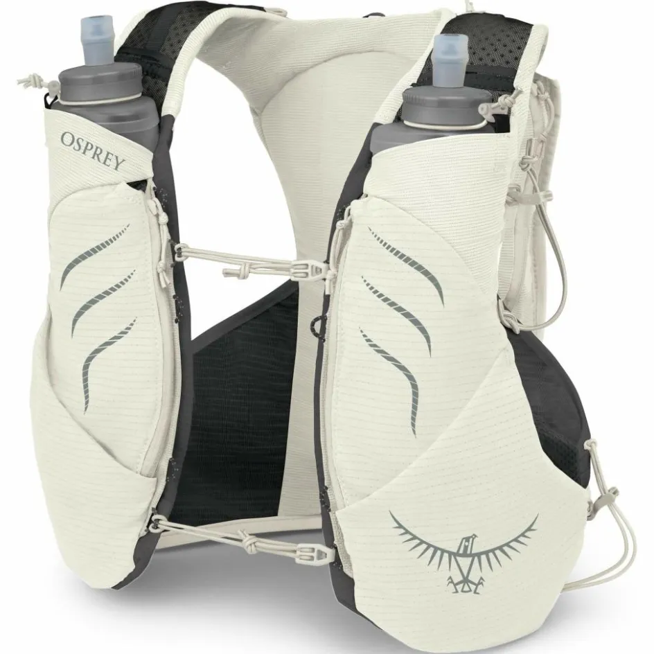 Zwei 500 ml Softflasks sorgen dafür, dass du stets mit Flüssigkeit versorgt bleibst. Für längere Durststrecken auf abgelegenen Trails lässt sich die Dyna 10 Pro zudem mit Ospreys Hydraulics LT 1.5 L Trinkblase (optional erhältlich) bestücken und das Trinkvolumen dadurch auf satte 2,5 L erweitern. Für Energieriegel oder die Stirnlampe gibt es mehrere Steckfächer und auch das Smartphone ist dank zweier RV-Fächer auf der Brust immer griffbereit. Deine Regenjacke kannst du zudem im elastischen Steckfach am Rücken unterbringen.
