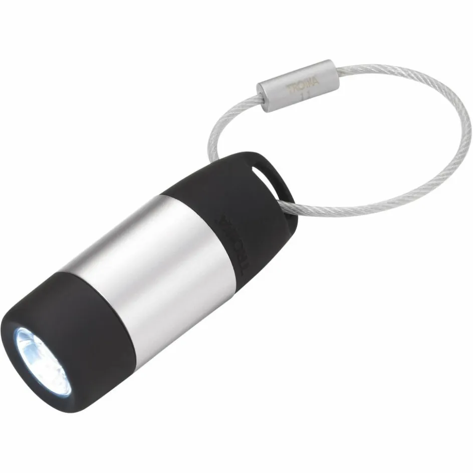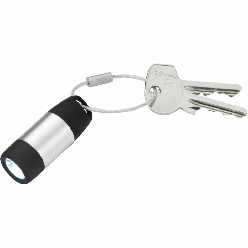 Die Taschenlampe im Miniformat kann mit ihrem Drahtring am Schlüsselbund befestigt werden und hilft dir den Schlüssel zielsicher in dunkel gelegene Schlüssellöcher zu navigieren.