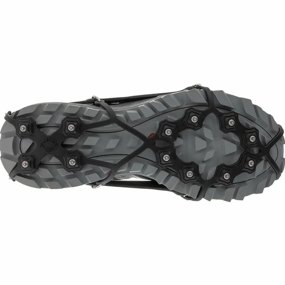 Diese hochwertigen Spikes bieten auf vereisten Untergründen auch in steilem Gelände optimalen Grip. Die aufs Trailrunning zugeschnittenen Spikes verfügen auf der Unterseite über 12 Hartmetallspitzen, die auch auf kurzen Felspassagen nicht abstumpfen.