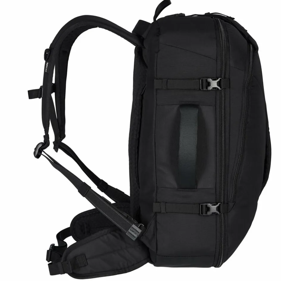 Die Marke mit der Schildkröte im Logo macht sich bereits seit vielen Jahren für den Schutz der Meeresschildkröte stark. Dazu gehört zum einen die Vermeidung von Plastikmüll, weshalb das EXP45 Carry-on Travel Pack aus recycelten Plastikflaschen hergestellt ist. Zum anderen gibt Pacsafe jährlich Fördergelder an Non-Profit-Organisationen, die sich der Sicherheit und dem Erhalt der Tiere und ihrer Lebensräume verschrieben haben (Pacsafe Turtle Fund).