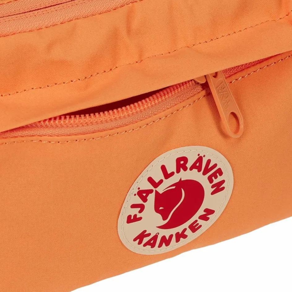 Die Hüfttasche erinnert uns eindeutig an das Frontfach des Rucksack-Klassikers. Sie ist auch aus dem gleichen robusten Material gearbeitet wie der Kanken: Vinylon F. Diese Faser quillt bei Nässe auf und wirkt feuchtigkeitsabweisend.
