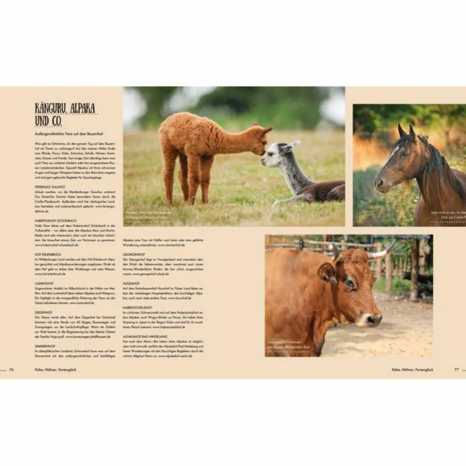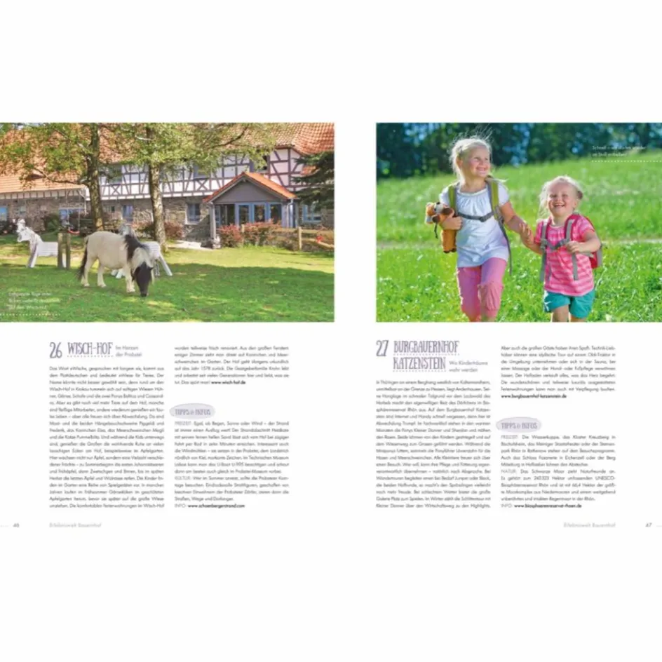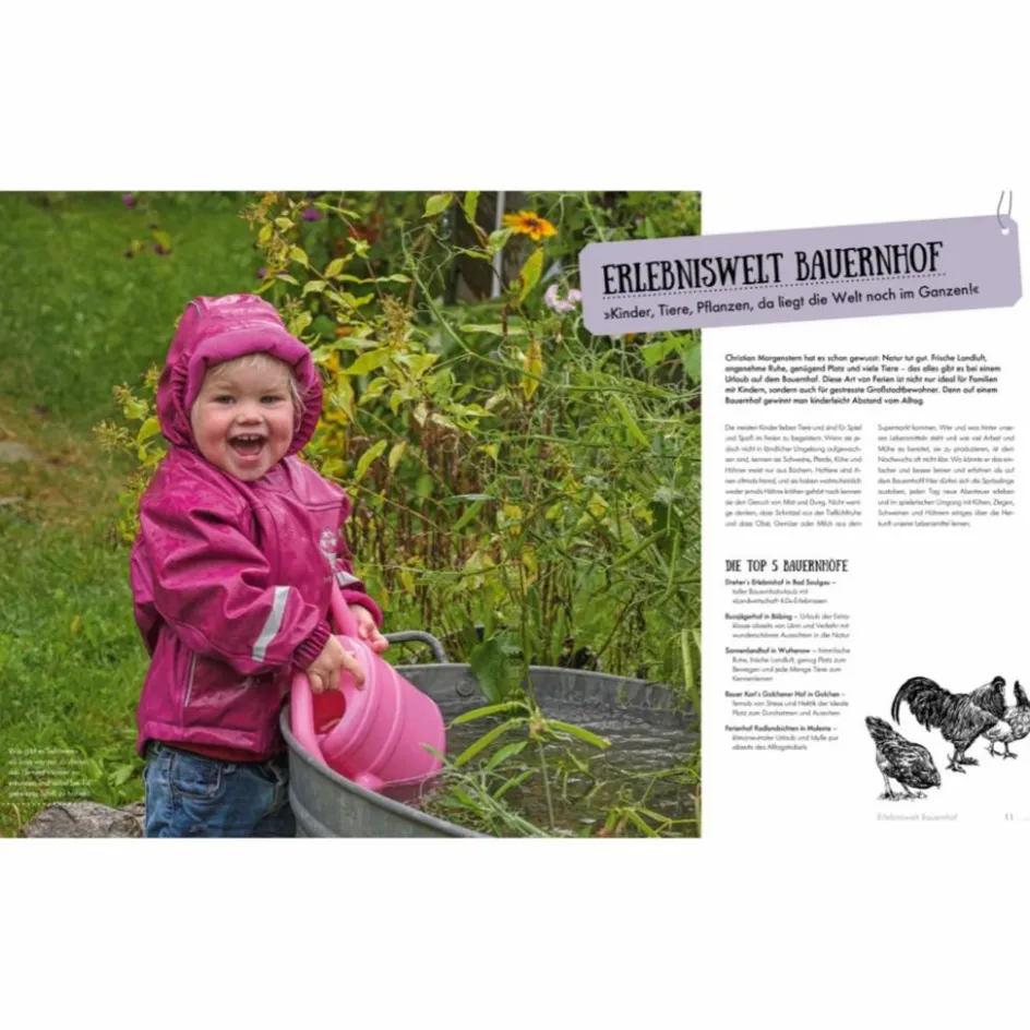 Schafe streicheln, Kühe füttern, auf dem Traktor mitfahren und Hühnern hinterherjagen, das ist der Inbegriff von Urlaub für Kinder! In diesem Reiseführer sind die schönsten Unterkünfte auf Bauernhöfen in ganz Deutschland zusammengestellt. Der ultimative Familienreiseführer für den Kurzurlaub, der jedem Spaß macht, gibt Tipps zu Sehenswürdigkeiten rund um die Bauernhöfe und versammelt ganz viele Ideen für Ferien, in denen es nie langweilig wird.