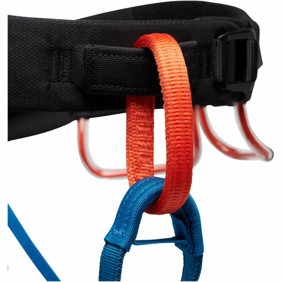 Wenn du am Fels unterwegs bist, kannst du an den vier formgepressten Materialschlaufen plus Nachziehschlaufe jede Menge Material unterbringen.