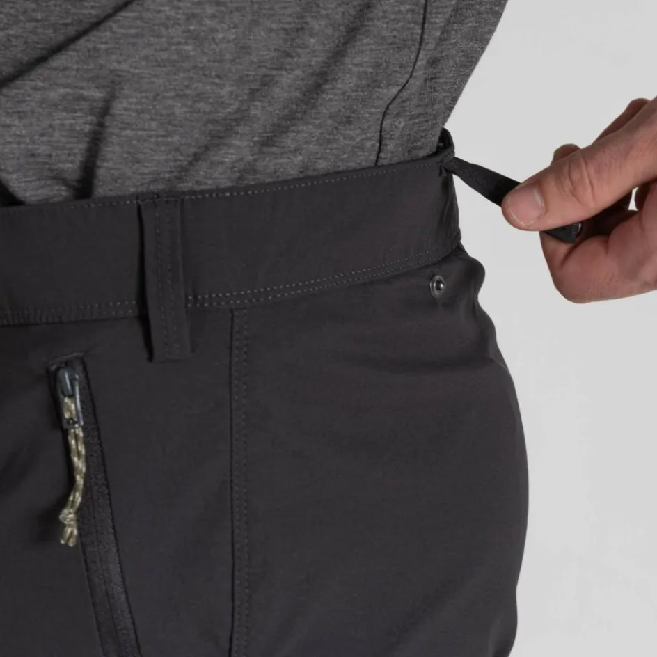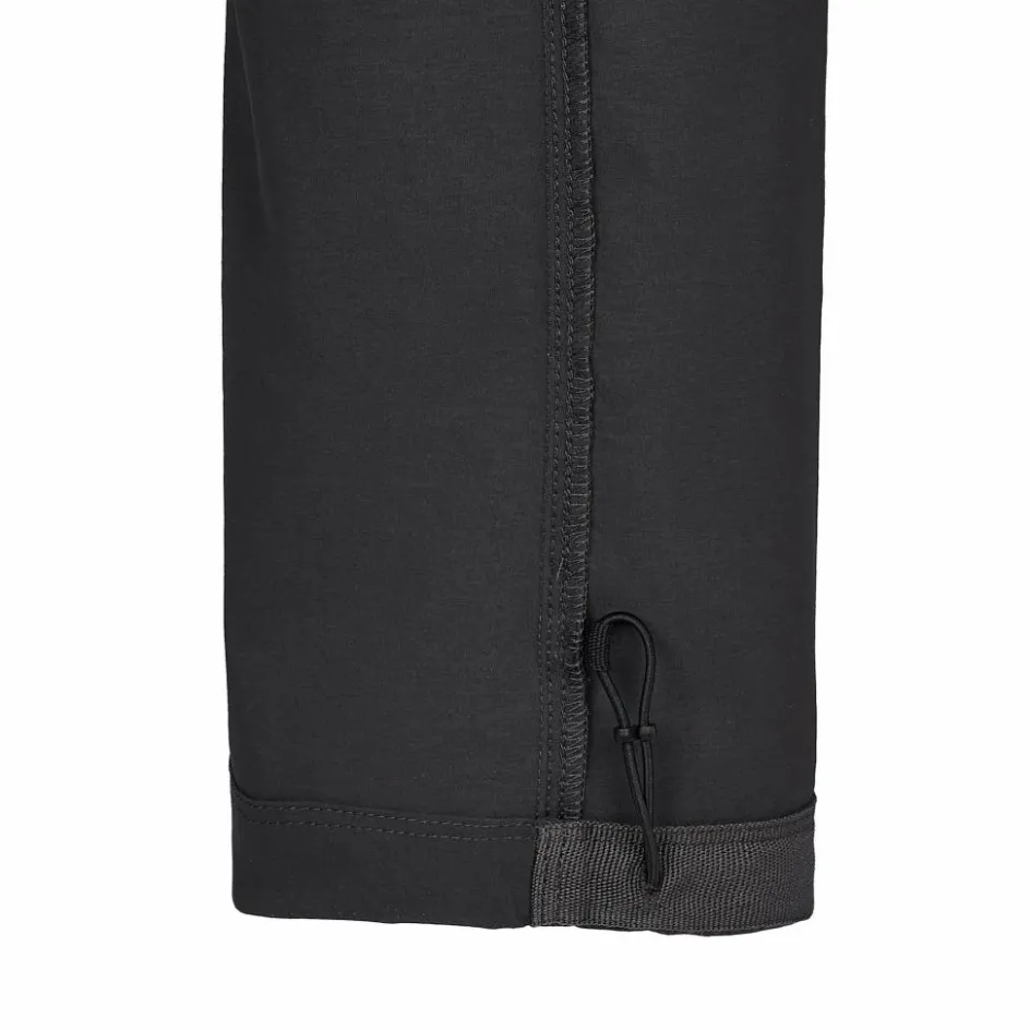 Die leichte Hose ist mit einigen hilfreichen Kleinigkeiten ausgestattet. Der einstellbare Hosenbund ist mit einem feuchtigkeitsleitenden Band versehen, welches dir bei heißen Temperaturen zur Seite steht. Auch die Beinabschlüsse lassen sich regulieren, um Insekten weniger Möglichkeiten zu bieten. Zusätzlich befindet sich im Inneren ein Abriebschutz, der eine schnelle Abnutzung durch deine Wanderstiefel verhindert. Stauraum wird dir in insgesamt vier Taschen geboten. Eine von ihnen lässt sich mithilfe eines kleinen Karabinerhakens schließen und verfügt zudem über eine RFID-Tasche, die Kreditkarten vor dem Auslesen schützt.