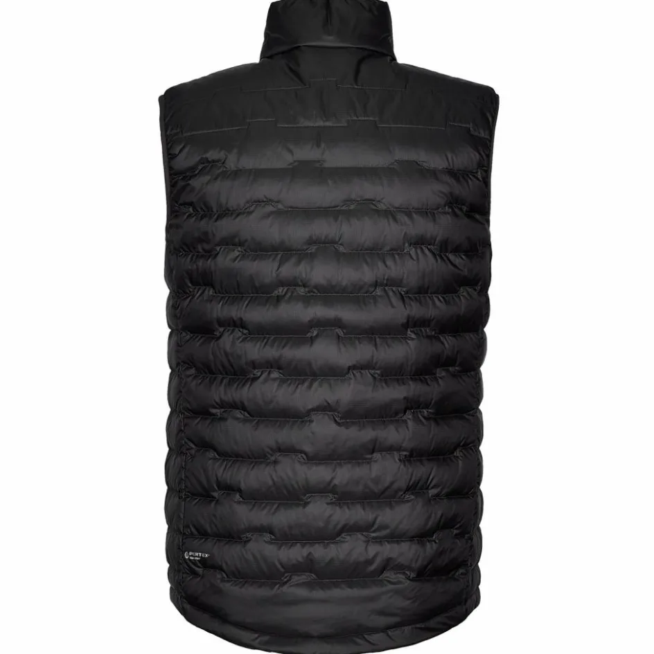 Das winddichte Außengewebe der daunenisolierten Weste besteht aus einer feinen Waffelstruktur, welche das recycelte Polyamid besonders robust macht. Das Material der Isolationsweste bleibt dennoch leicht und atmungsaktiv und vermittelt dir ein angenehmes Trageklima bei anstrengenden Aufstiegen. Für wohlige Wärme sorgt die RDS-zertifizierte, PFC-frei wasserabweisende Daune. Diese kann dir dank der hohen Bauschkraft einen optimalen Wärmerückhalt bieten, selbst wenn die Füllung mal feucht wird.