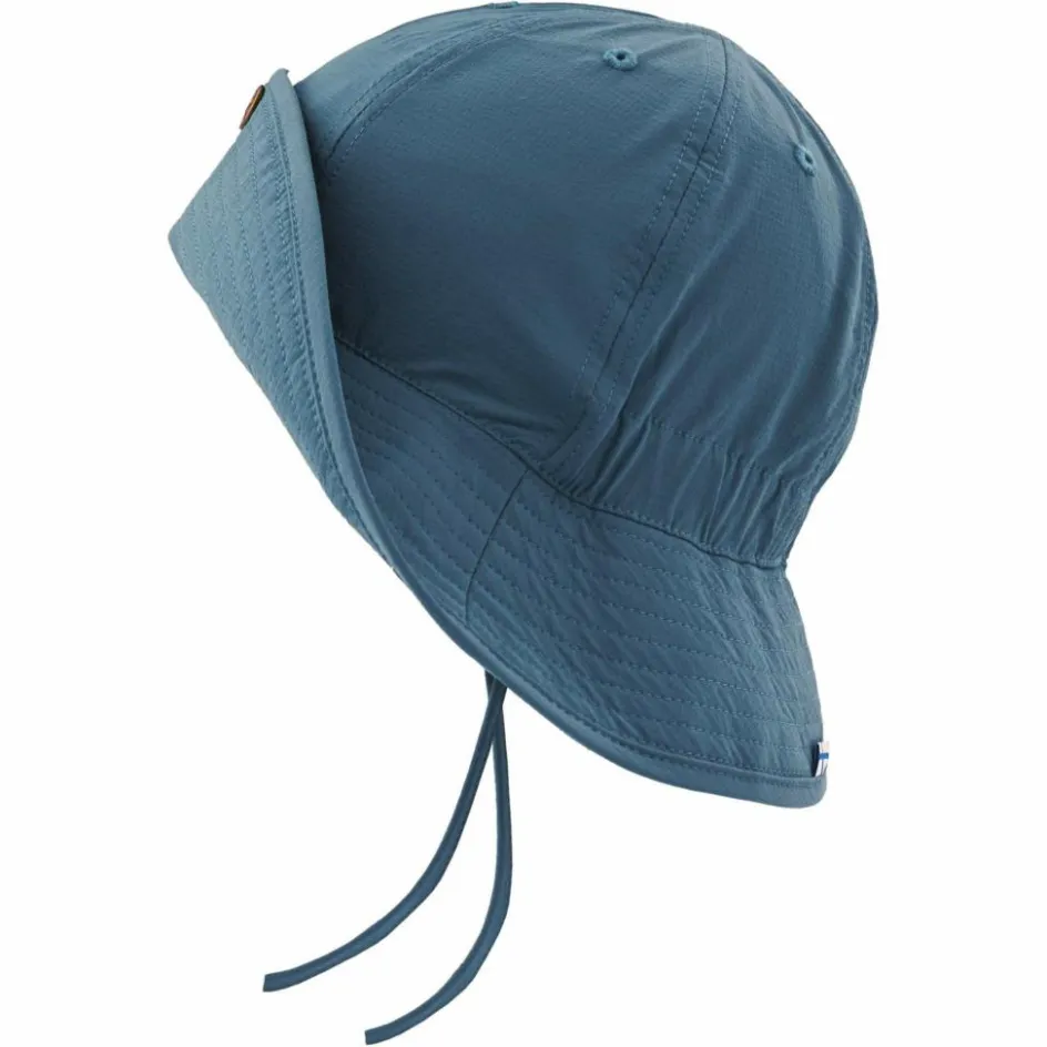 Der Sonnenhut besteht aus einer leichten Kunstfaser-Mischung, die schnell wieder trocknet, wenn der Hut beim schweißtreibenden Toben oder beim Spielen in Wassernähe feucht geworden ist. Dank seines hohen UV-Schutzes von 50+ und seiner breiten, umlaufenden Krempe sind deine Kids sehr gut vor der brennenden Sommersonne geschützt. Die Krempe kann wahlweise vorne per Druckknopf fixiert oder heruntergeklappt werden. Die Bindebänder verhindern, dass der Sonnenhut beim Paddeln vom Kopf geweht wird und mühsam aus dem Wasser gefischt werden muss.
