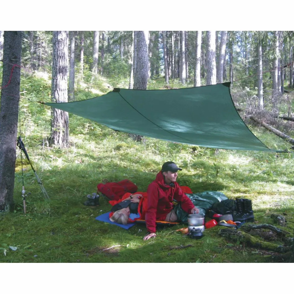 Auch als Ergänzung zu Hilleberg-Zelten bietet ein Tarp große Vorteile: als Schutz über dem Eingang des Zeltes, als separates Dach für die Outdoorküche oder als Sammelplatz für eine Gruppe zum Plaudern.