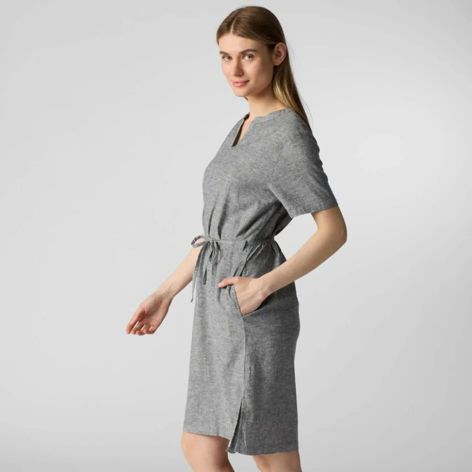 Das lässig-feminine Tidore Dress besteht aus einem weichen Naturfaser-Gewebe, das auch bei hohen Temperaturen überzeugt. Optimal für Städtereisen in warmen Gefilden oder laue Sommerabende am See!