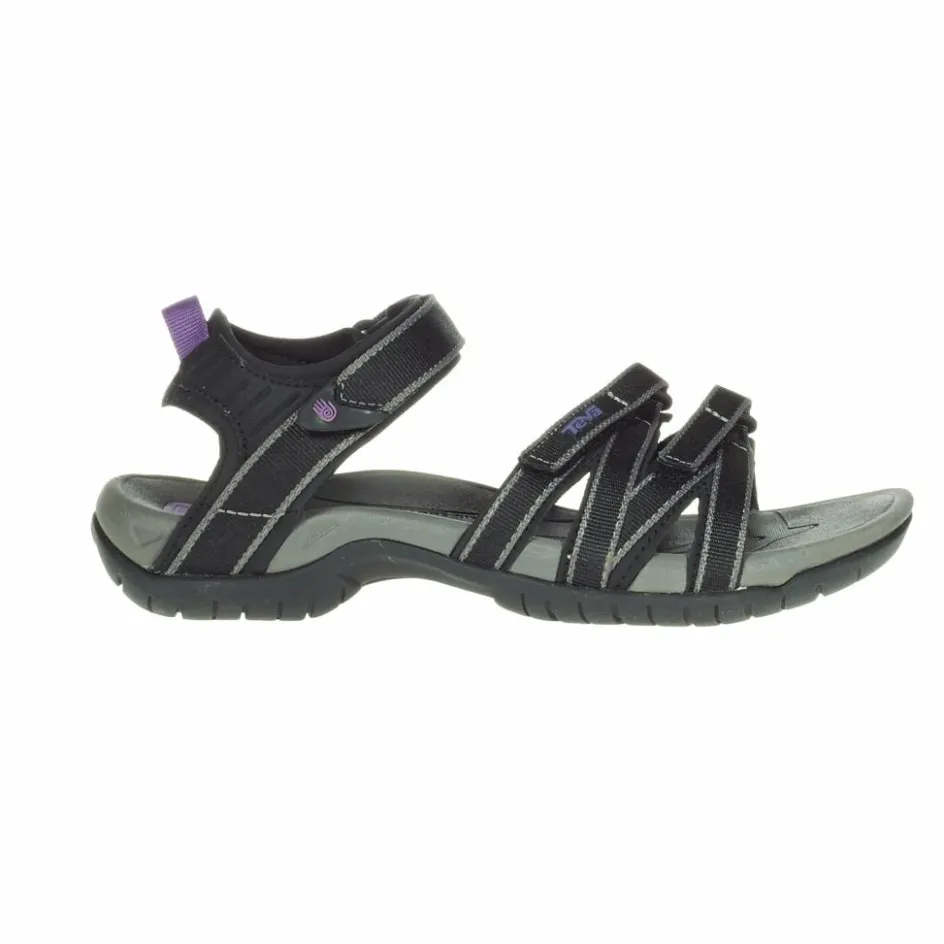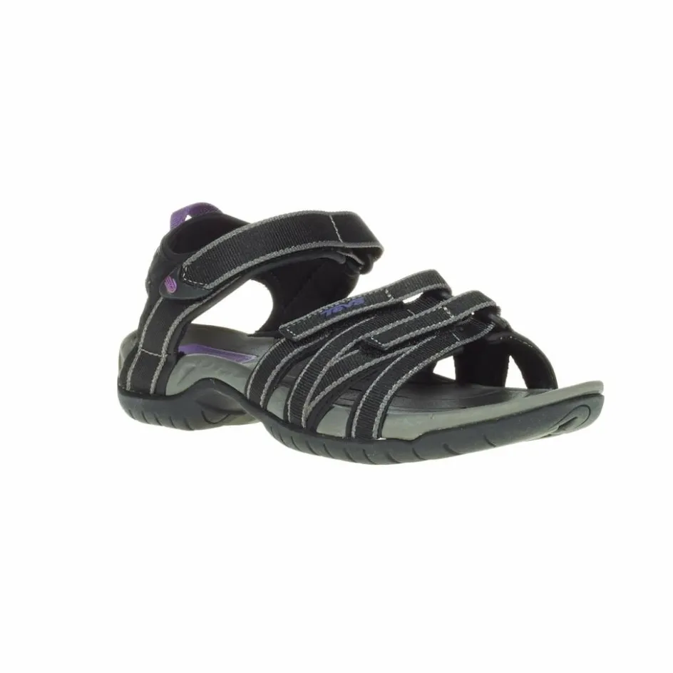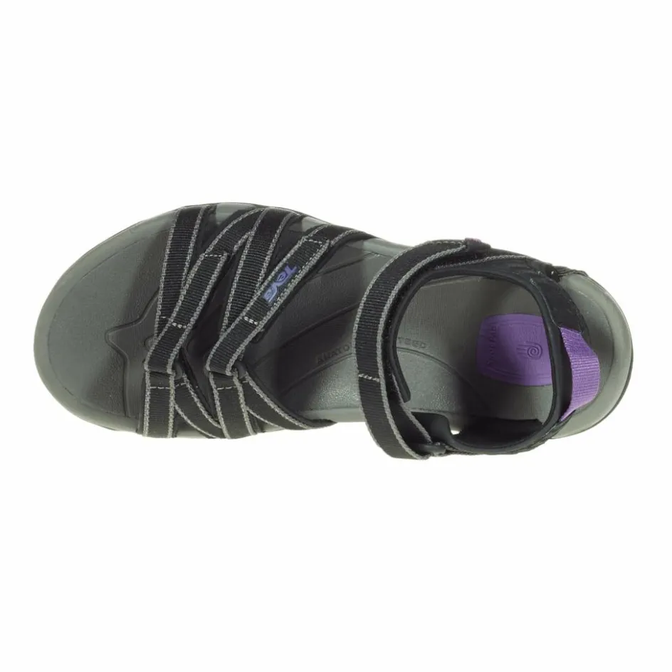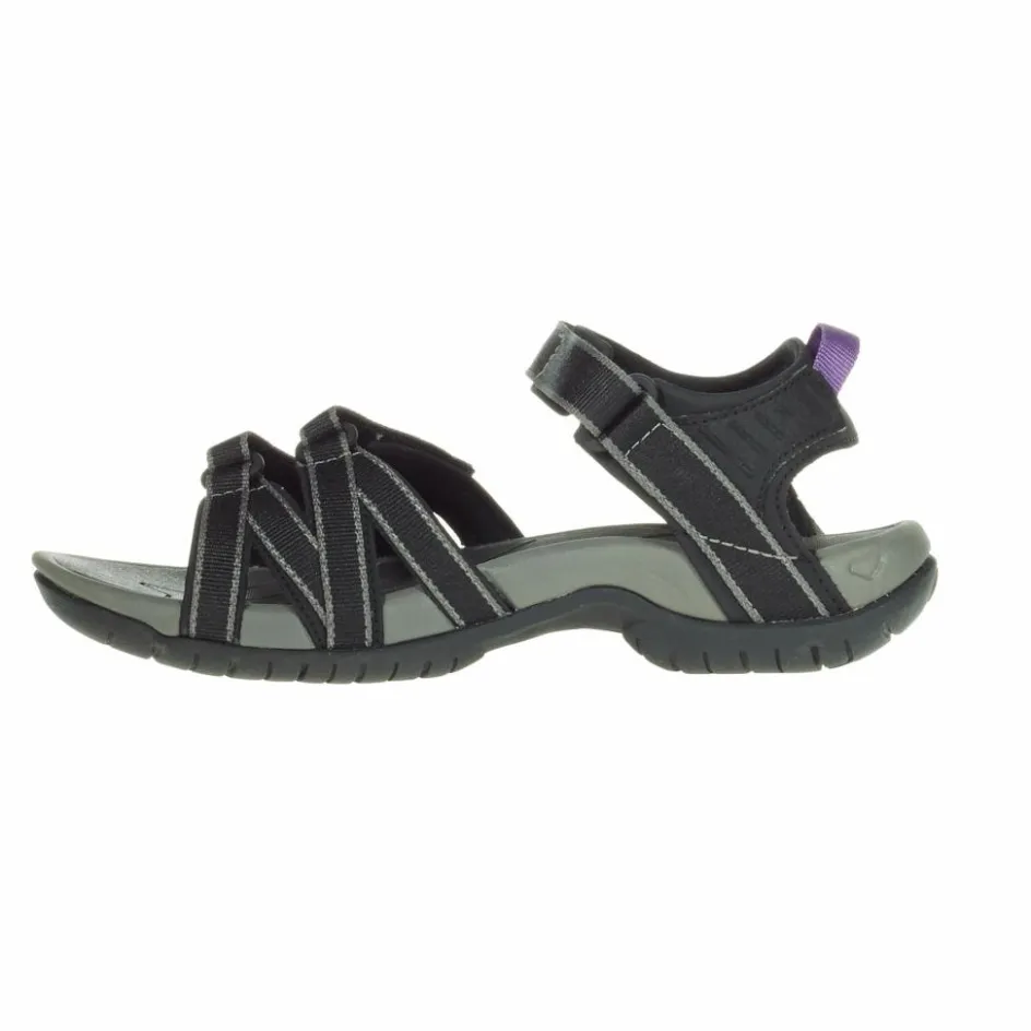Damit auch nach langem Tragen nichts zwickt oder drückt, sind die schmalen Riemchen der Tirra mit Neopren weich unterpolstert und können in der Weite angepasst werden. Das bequemes EVA-Fußbett der Sandale ist zusätzlich mit einem weich dämpfenden Fersenkissen ausgestattet. Eine vorgeformte Polyamidplatte stabilisiert den Mittelfuß und verbessert damit die Trittsicherheit. Tevas griffige Spider-Original Laufsohle ist besonders rutschfest, sodass sich die Tirra für Touren durch Trocken und Nass erlaubt.