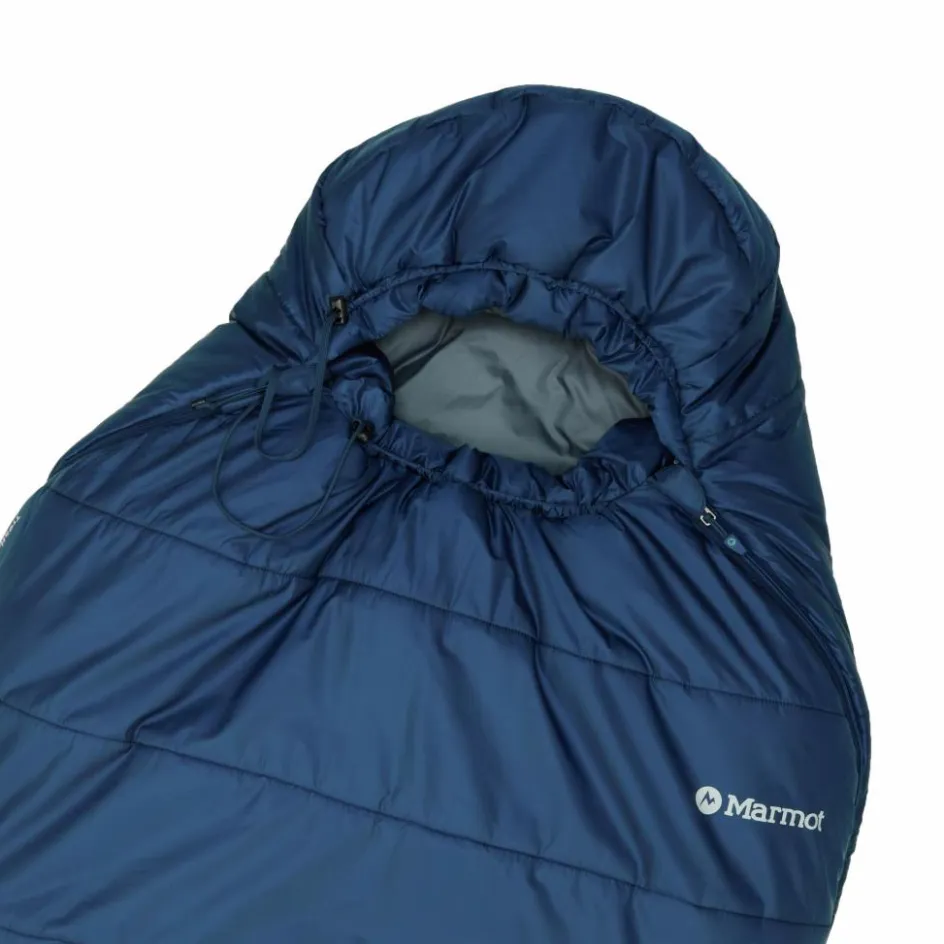 Für Komfort sorgen zahlreiche Details. Ein ergonomischer, gefütterter Wärmekragen hält die warme Luft im Schlafsack. Zusätzlich kann die Kapuze eng zugezogen werden. Die Schnürzüge mit runder und flacher Kordel ermöglichen dabei auch in der Nacht eine intuitive Bedienung.