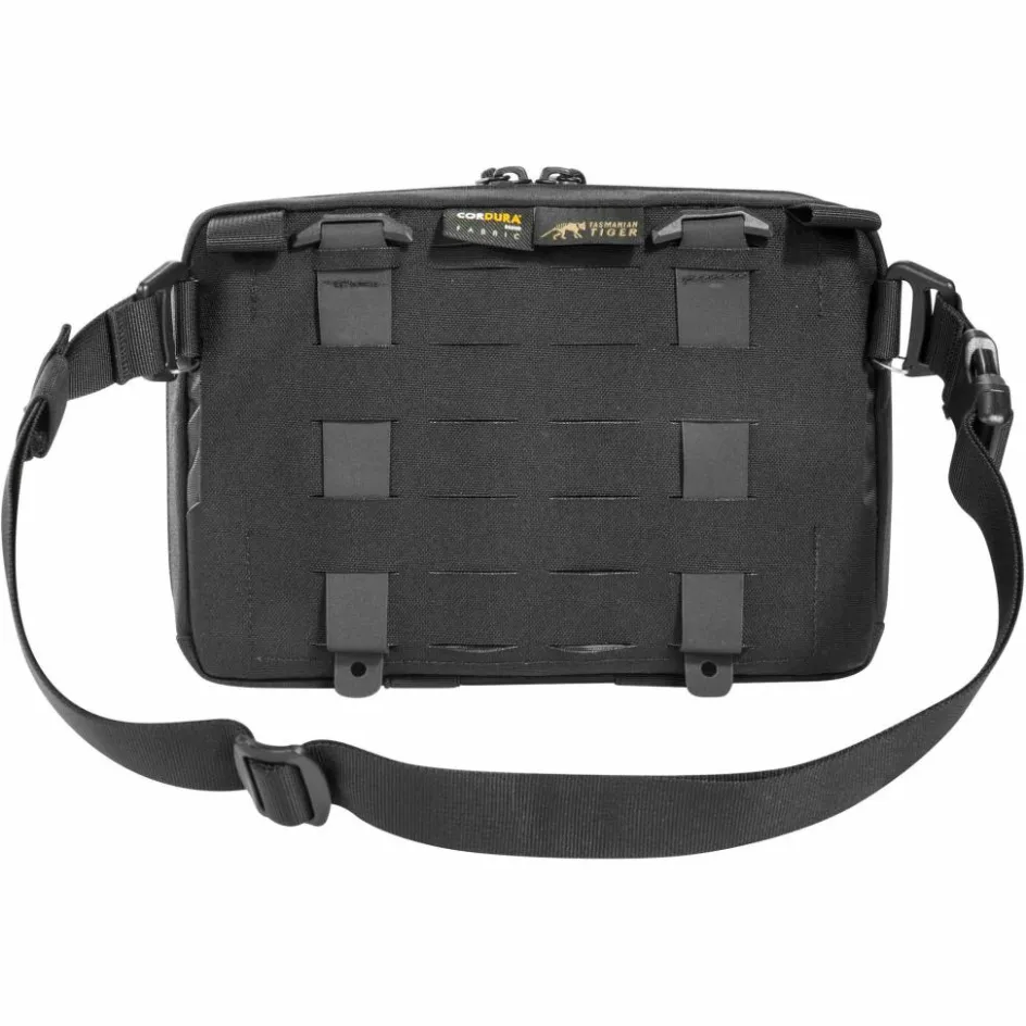 Die Tasche verfügt über ein abnehmbares MOLLE-Reverse-System zur Befestigung auf Plattenträgern und an Rucksäcken. Zudem kann sie mit Schlaufen am TT Survival Pack oder anderen MOLLE-Flächen mit entsprechenden Schnallen eingehängt werden. Auch ein Durchlass für eine 50 mm-Gürtelschlaufe ist vorhanden. Innen befinden sich flache Netztaschen, elastische Schlaufen und eine große MOLLE-Klettfläche.