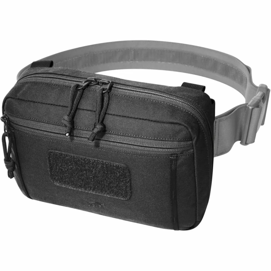 Taktische Ausrüstungstasche mit abnehmbarem Hüftgurt. Die Tasche verfügt über ein abnehmbares MOLLE-Reverse-System zur Befestigung auf Plattenträgern und an Rucksäcken.