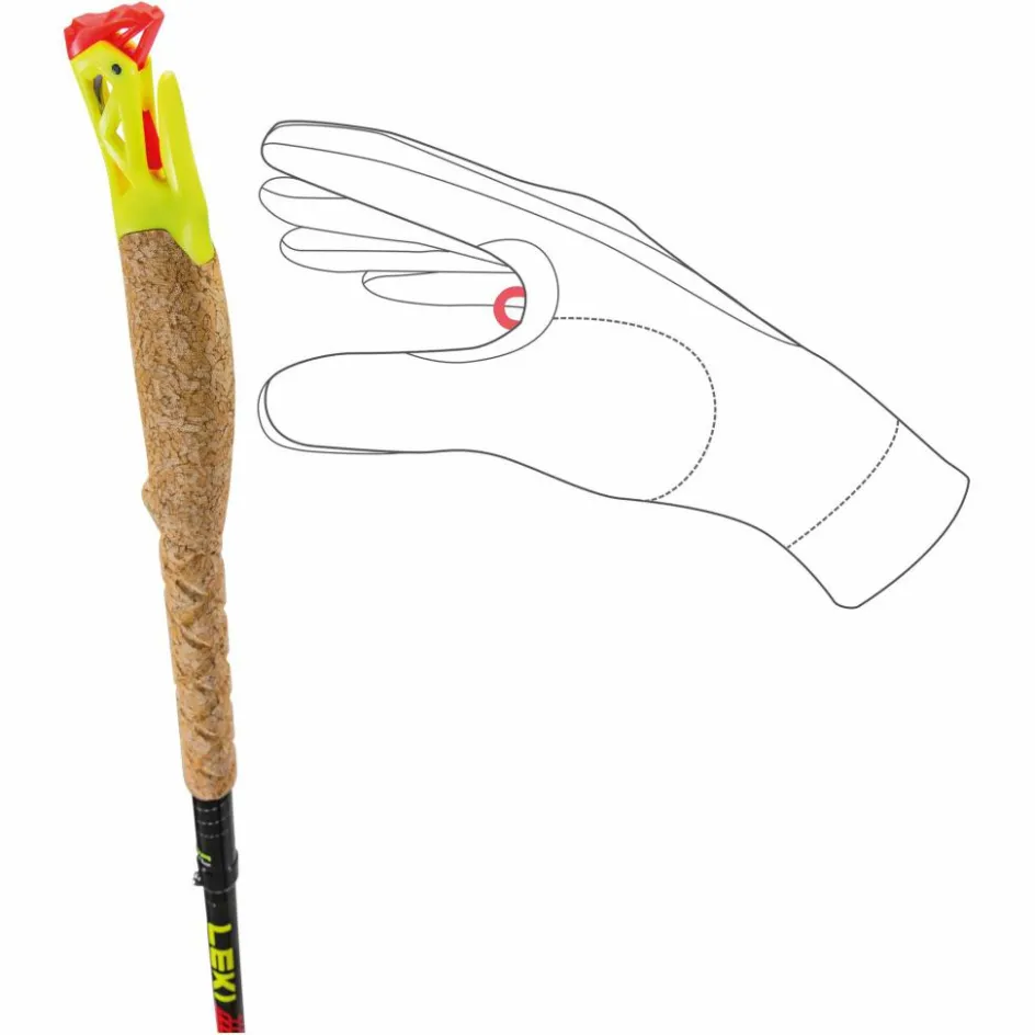 Die Shark Frame Handschlaufe sitzt wie angegossen und überträgt die Kraft direkt in das Zentrum des Stocks. Dank der schlanken Form des Shark Dorns wird der Loop zum Einklicken selbst mit geschlossen Augen getroffen. Eine zusätzliche Nase am Griff sowie die Griffverlängerung bieten weitere Griffoptionen.