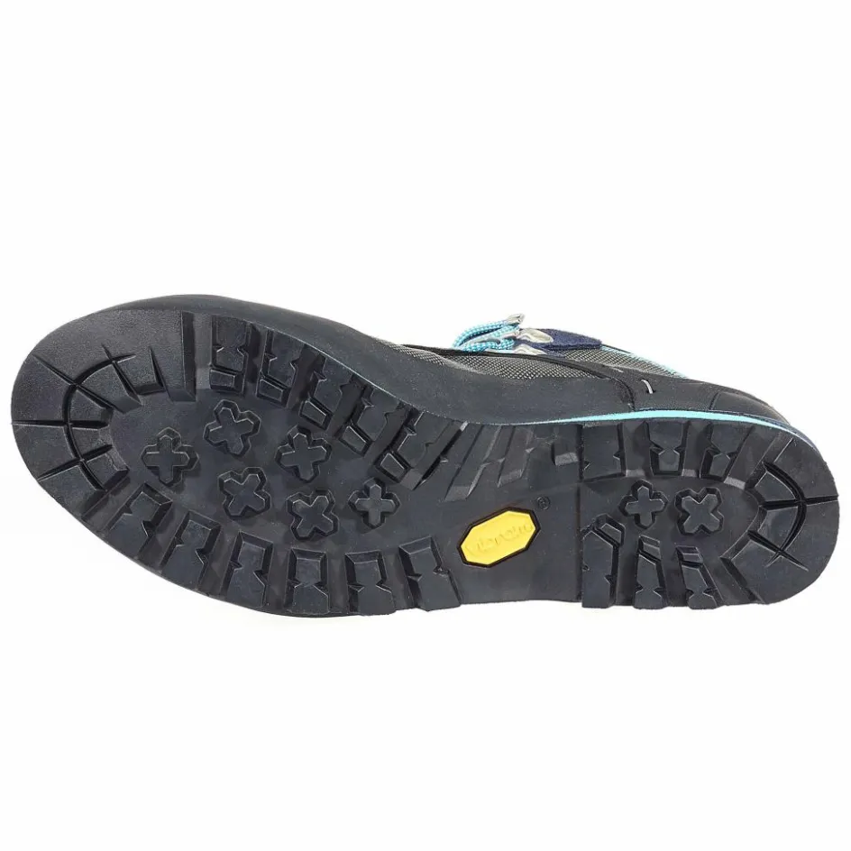 Dafür sorgt der stabile Sohlenaufbau mit Kipphebelbefestigung für Steigeisen an der Ferse (halbautomatische Steigeisen), einer robuste Geröllschutzgummierung rundum und die griffigen Vibram-Mulaz-Profilsohle mit Absatzbremse und Kletterzone.