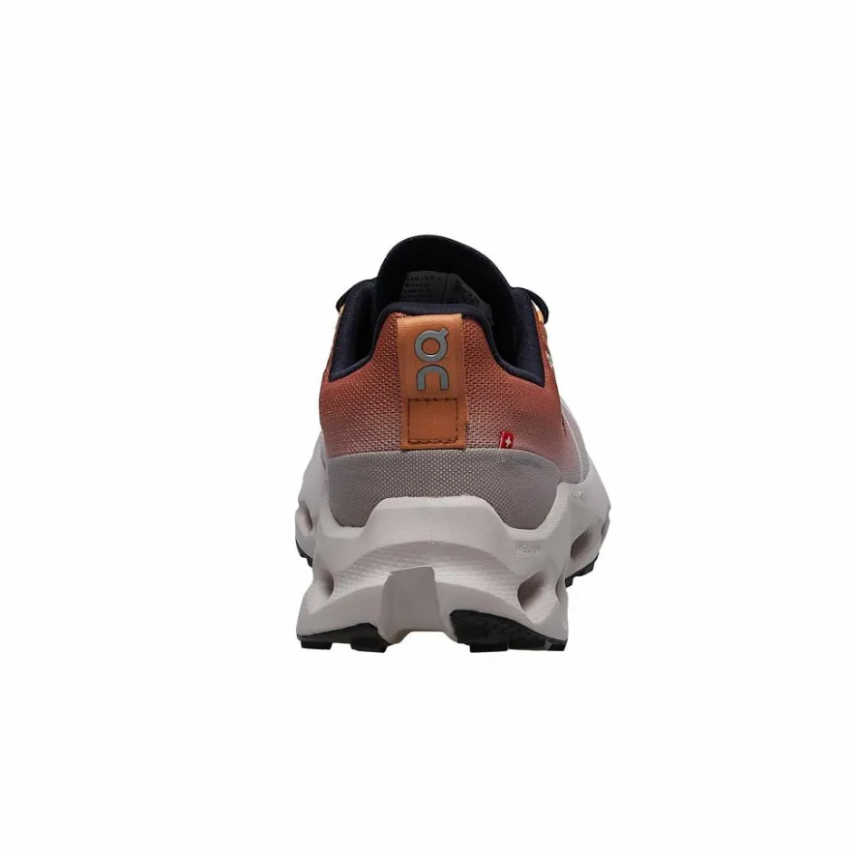 Auffallend ist beim Cloudsurfer Trail vor allem die Anordnung der Cloud-Dämpfungselemente. Im Zehen- und Ballenbereich sind sie horizontal angeordnet, im Mittelfußbereich kippen sie leicht nach hinten, wodurch zum einen der Vortrieb verbessert, vor allem aber die Abrollbewegung des Fußes auch bei hohem Tempo optimal unterstützt wird. Die Laufsohle ist mit griffigem Profil ausgestattet, dass up- und downhill für bestmöglichen Halt sorgt. Dank der moderaten Profiltiefe kannst du den Trailrunningschuh auch auf härteren Untergründen noch gut nutzen.