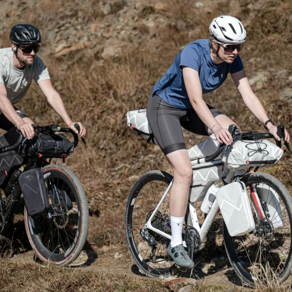Das leichte Material der Cyclite Taschen ist eine Eigenentwicklung und zeigt sich überaus funktional: Das LiteGrid-RN200T3-Materials ultraleicht, robust und wetterfest. Cyclite verarbeitet dafür zwei unterschiedlich starke Nylonarten mit einer speziellen Webtechnik zu einem Ripstop-Gewebe. Dieses Gewebe wird anschließend beidseitig beschichtet und hochfrequenzverschweißt. Das macht das Material abrieb- und reißfest. So entsteht eine perfekte Synthese aus Leichtigkeit und Stabilität – für wetterfeste Bikepacking-Taschen, die sich leicht reinigen lassen.