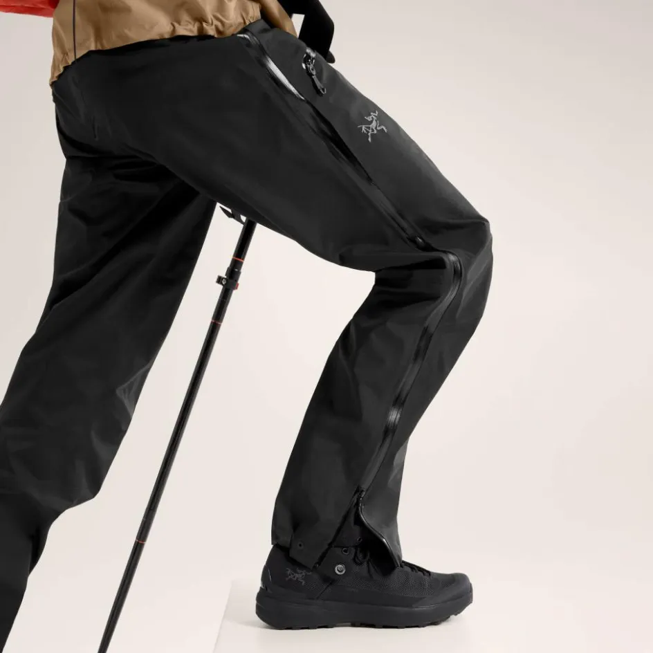 Als Regenhose verfügt die Beta Pant über durchgehende seitliche Reißverschlüsse, um das An- und Ausziehen mit Schuhen möglich zu machen. Bei Bedarf kannst du die Ösen an den Beinabschlüssen zum Durchziehen eines Kordelzugs nutzen. Ein mit Gummizug anpassbarer Bund sowie innenliegende Materialverstärkungen an den Beinabschlüssen runden die Beta Pant ab.