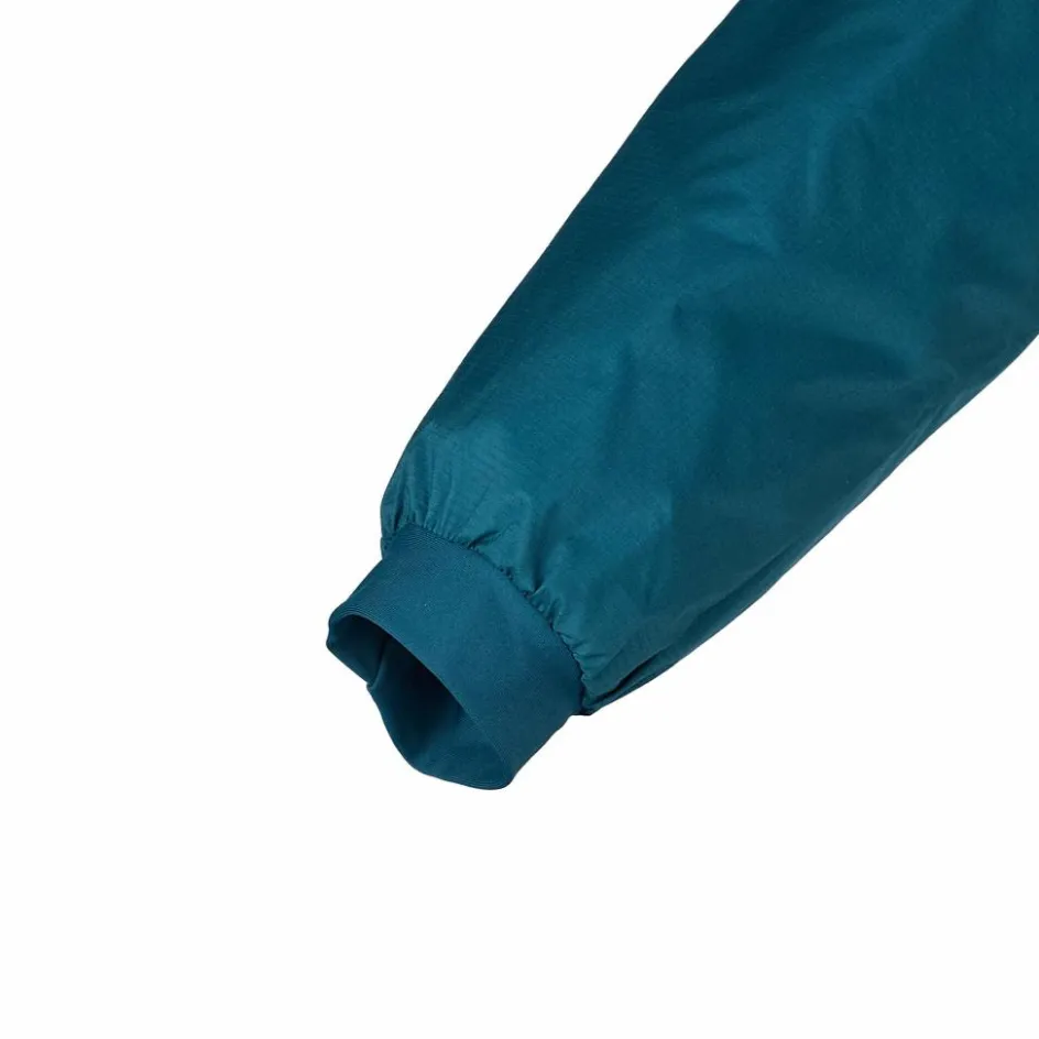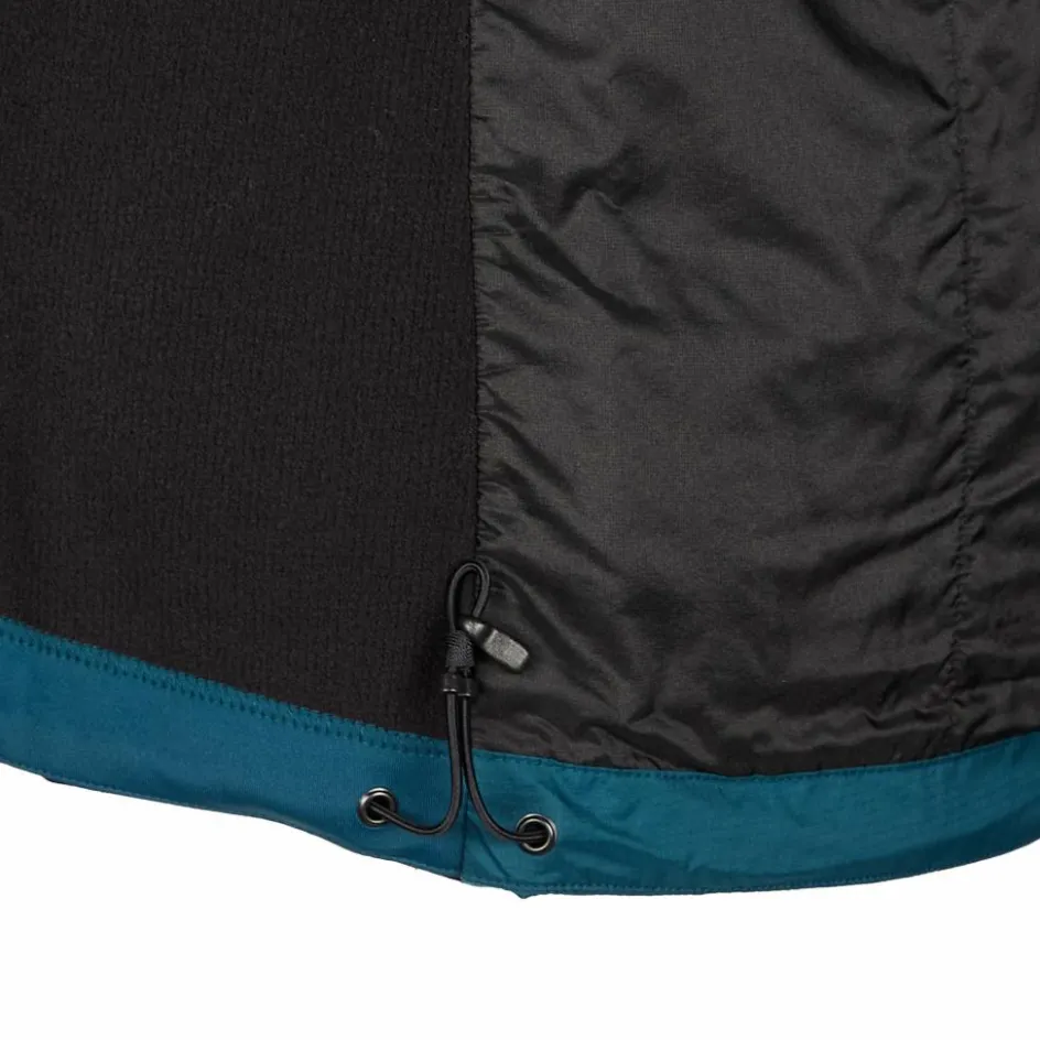 Außen kommt ein imprägniertes, abriebfestes, windabweisendes Nylon zum Einsatz, das für leichten Wetterschutz sorgt. So kann leichter Nieselregen eine Weile abperlen. Dank seitlichen Stretchfleece-Einsätzen wird ein Überhitzen verhindert und der Trägerin mehr Bewegungsfreiheit verschafft. Die Materialien sind glatt in ihrer Oberfläche, damit dir das Schichten unter und über die Jacke leicht von der Hand geht. Dezente Bündchen und eine flexible, weiche StormHood Kapuze passen mit deinen Bekleidungsschichten zusammen, ohne Falten zu schlagen.