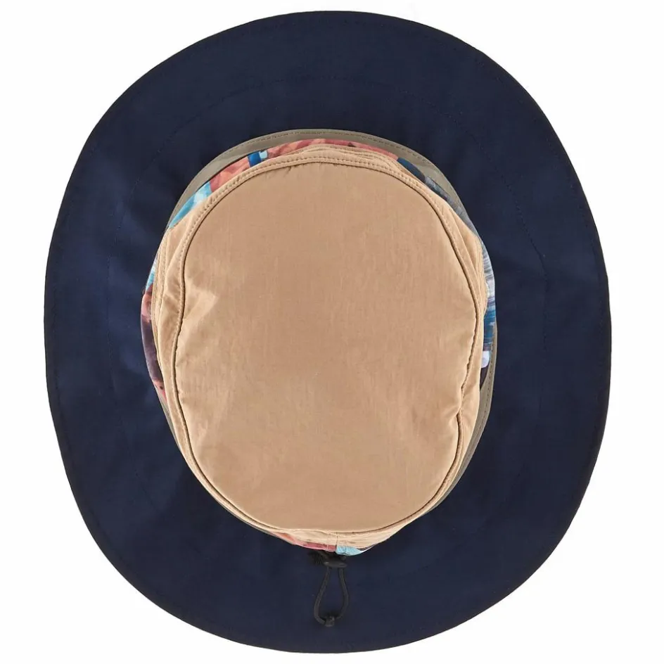 Durch die ca. 6,5 cm breite, flexible Krempe und den UV-Schutz von 50+ bist du unterwegs bestens vor erhöhter Sonneneinstrahlung geschützt. Dank des Schnürzugs am Hinterkopf lässt sich der Hut passgenau auf die gewünschte Weite einstellen. Das verstellbare Kinnband sorgt dafür, dass der Hut auch bei windigem Wetter dort bleibt, wo er hingehört. Auf der Innenseite der Hutkrone befindet sich eine Art Tasche, in der du den kompletten Hut platzsparend verstauen kannst. So passt er in jedes Reisegepäck.