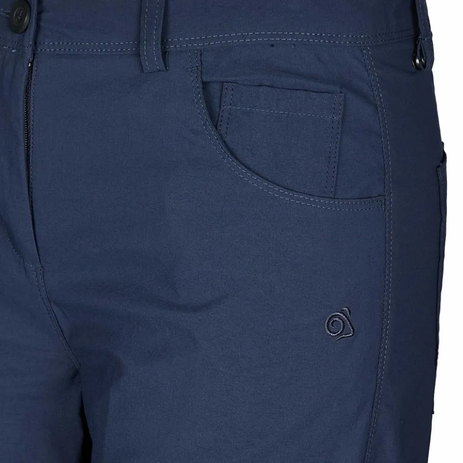 Ihr robustes Material besteht aus teilweise recyceltem Polyamid und einem guten Schuss Elasthan. Das verleiht der Reisehose viel Bequemlichkeit und ist zudem für den guten Feuchtigkeitstransport verantwortlich. Kommst du auf deiner Tour ins Schwitzen, wird die Feuchtigkeit schnell nach außen weitergeleitet. Das schnelltrocknende und atmungsaktive Gewebe tut sein Übriges für ein angenehmes Tragegefühl.