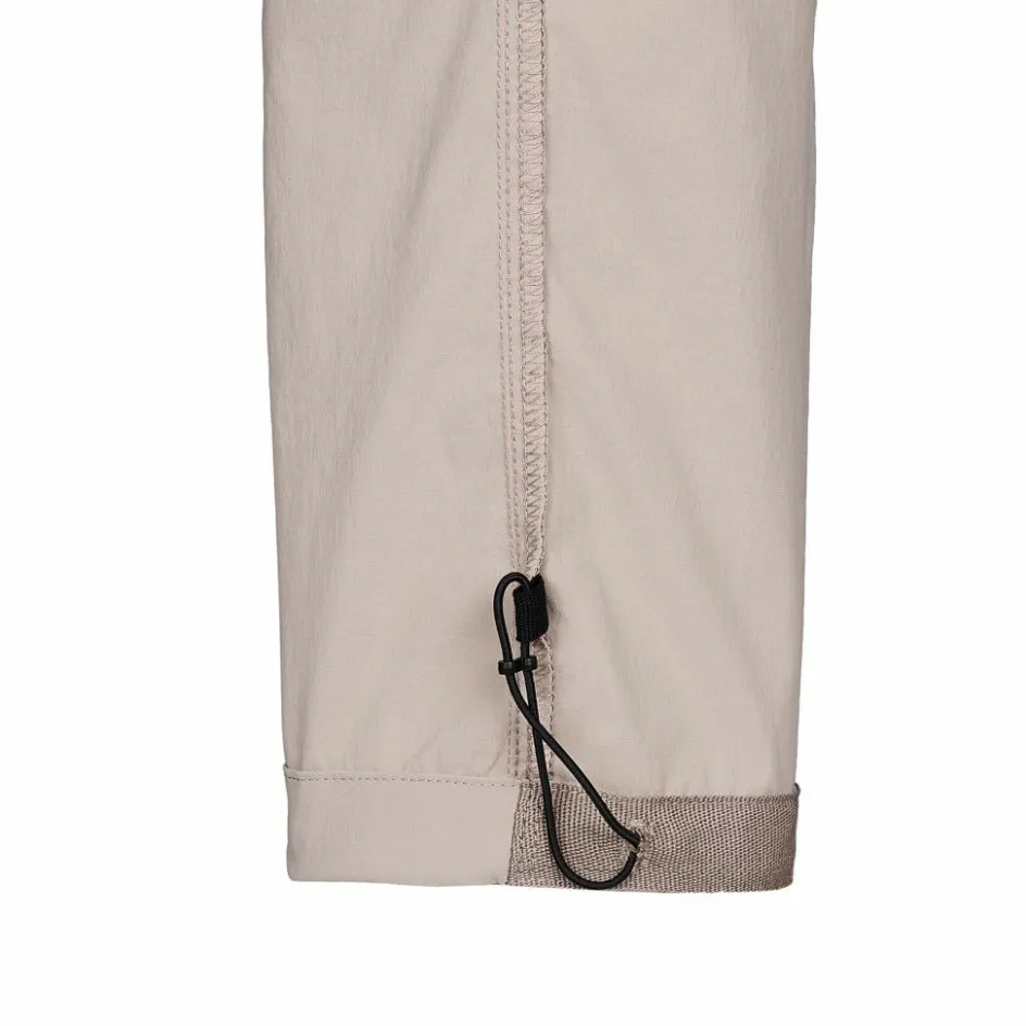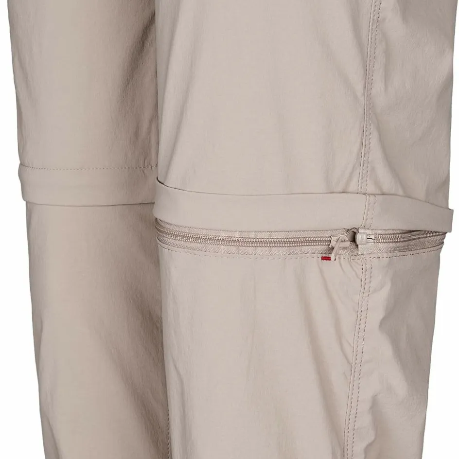 Das Material der bequemen Reisehose besteht aus zum Teil recyceltem Polyamid. Was das Gewebe nicht nur nachhaltiger, sondern auch robuster macht. Durch die Zugabe von Elasthan kommt noch eine gute Portion Dehnbarkeit hinzu, welche bei Wanderung und Erkundungen von Nutzen ist. Das Material verfügt über ein gutes Feuchtigkeitsmanagement, dass dir in wärmeren Gefilden hilfreich zur Seite steht.