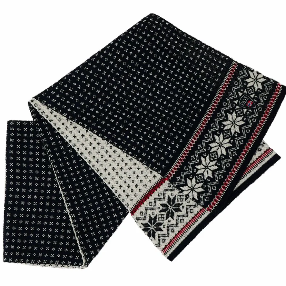 Der Garmisch Scarf besteht aus reiner Merinowolle und liegt besonders weich auf der Haut. Das traditionelle Strickmuster mit achtblättriger Selbu-Rose sorgt für eine bezaubernde, winterliche Optik.