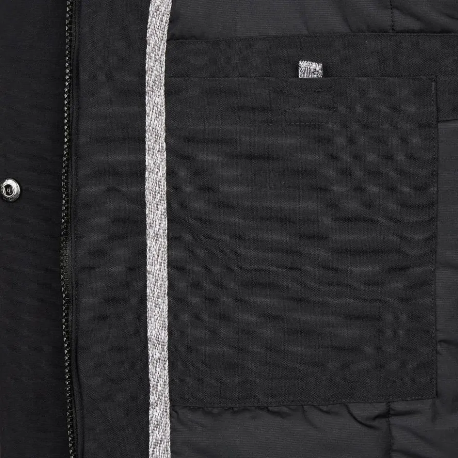 Reichen dir deine Mütze und dein Schal nicht aus, unterstützen dich Kapuze und Stehkragen beim Warmbleiben. Die mit Klettverschlüssen versehenen Ärmelabschlüsse kannst du nach Bedarf einstellen. Die Windschutzleiste über dem Reißverschluss macht es frostigen Böen besonders schwer. Genügend Stauraum für wichtige Habseligkeiten findest du in den Taschen innen sowie außen.