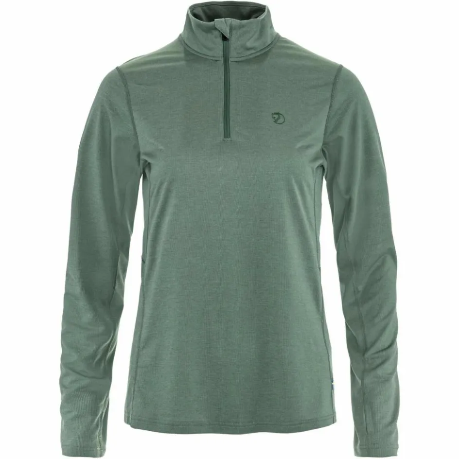 Vielseitiges Langarmshirt aus schnelltrocknendem Material; das Abisko Day Hike Half Zip W eignet sich beim warmem Wetter solo getragen und kann ansonsten auch im Lagensystem eingesetzt werden.
